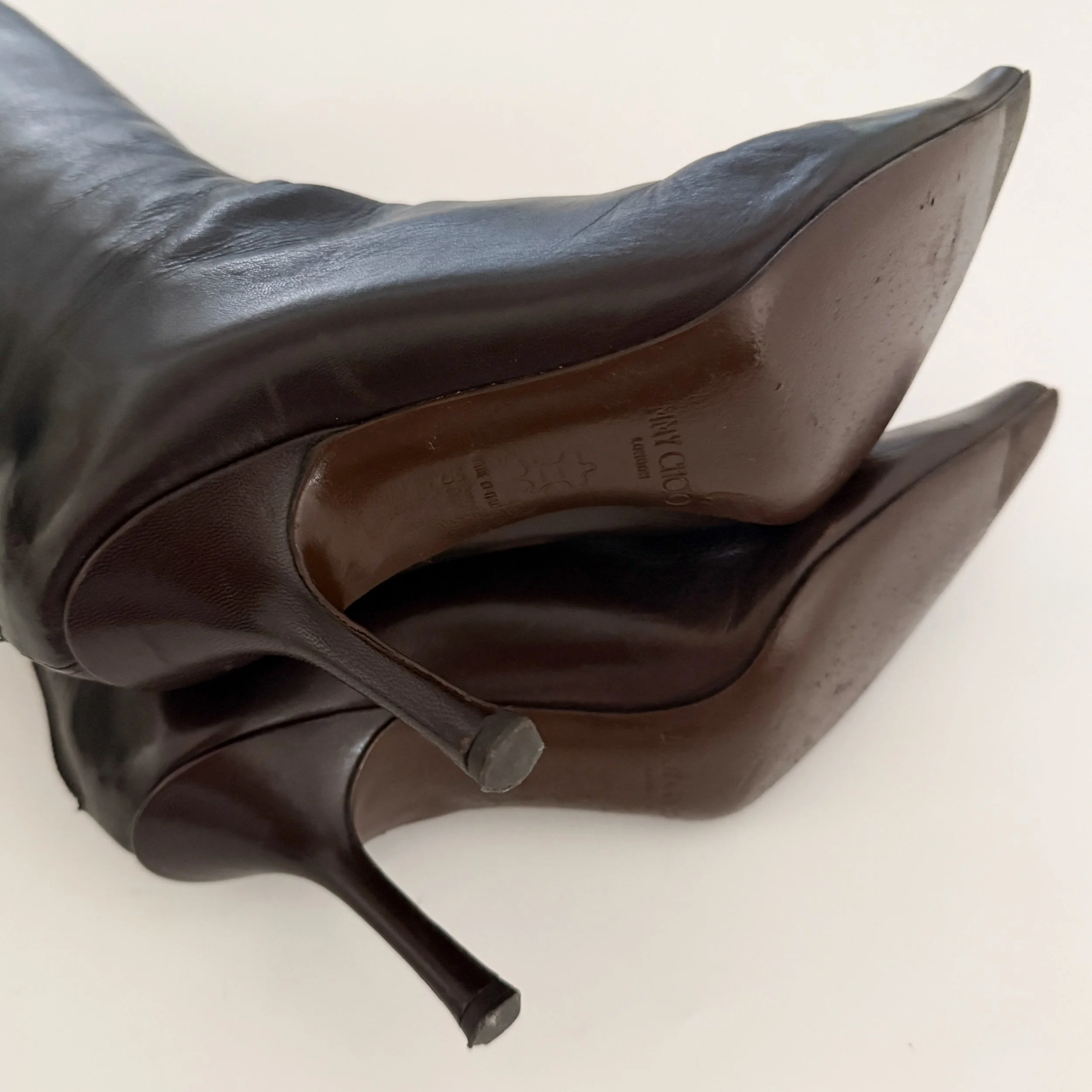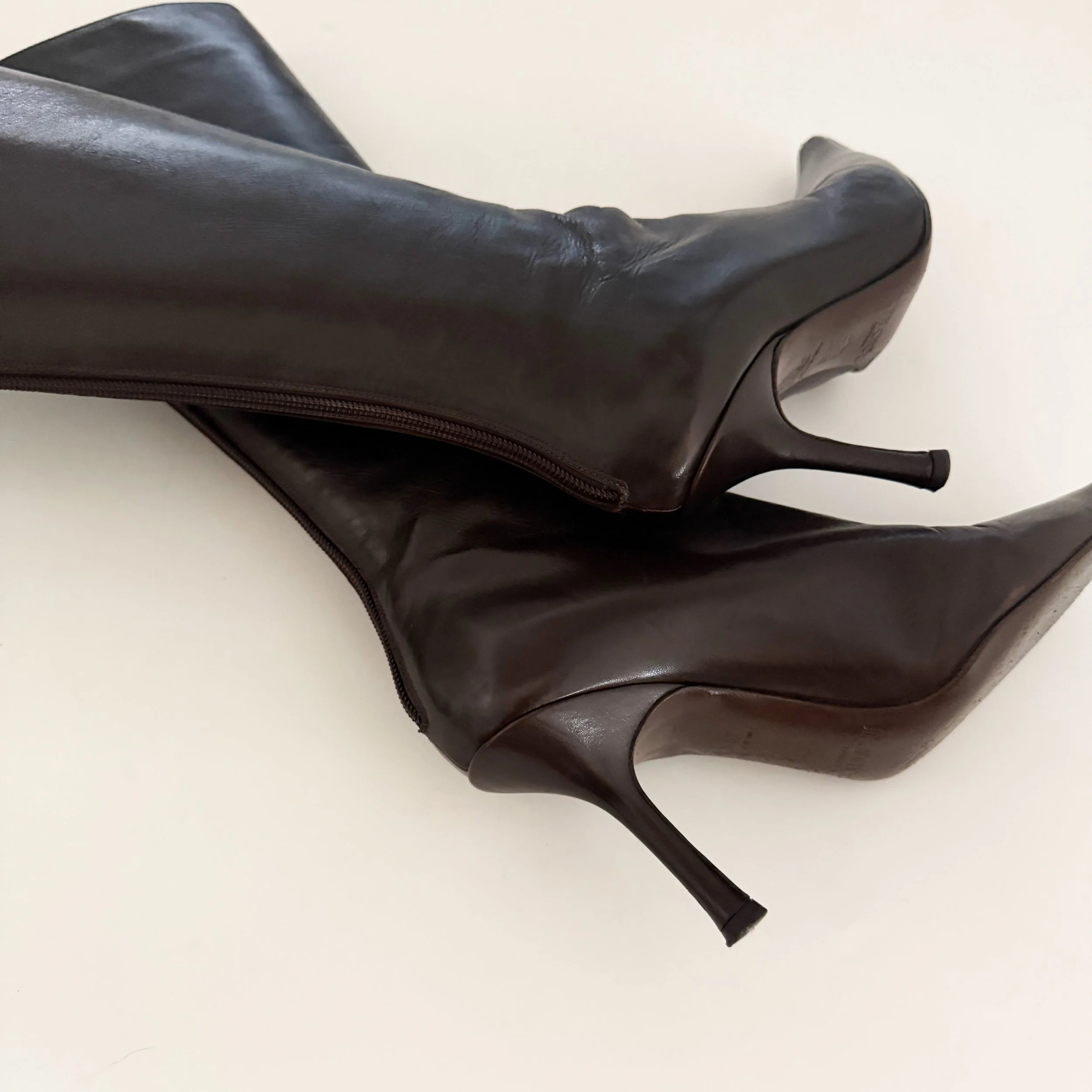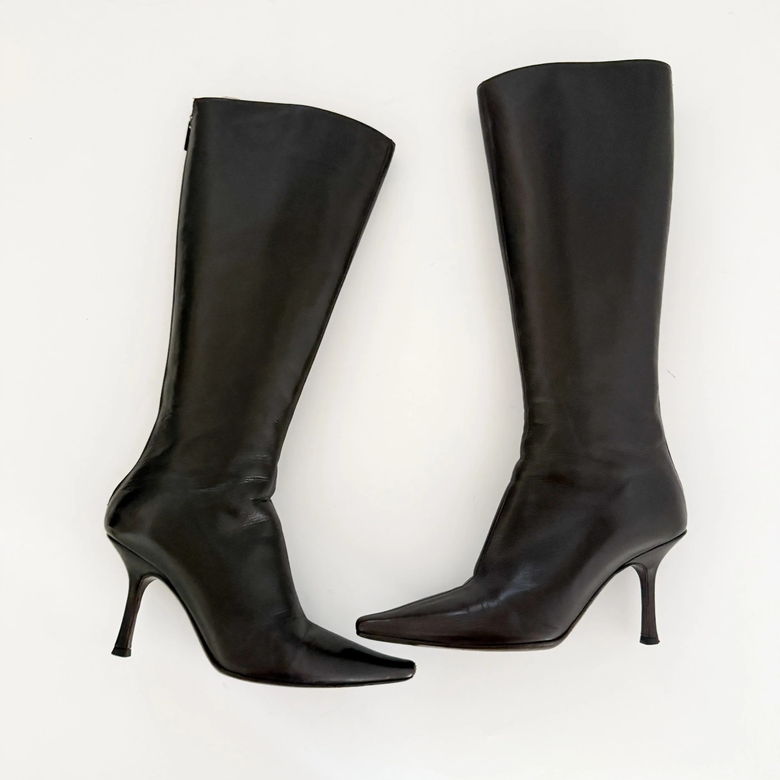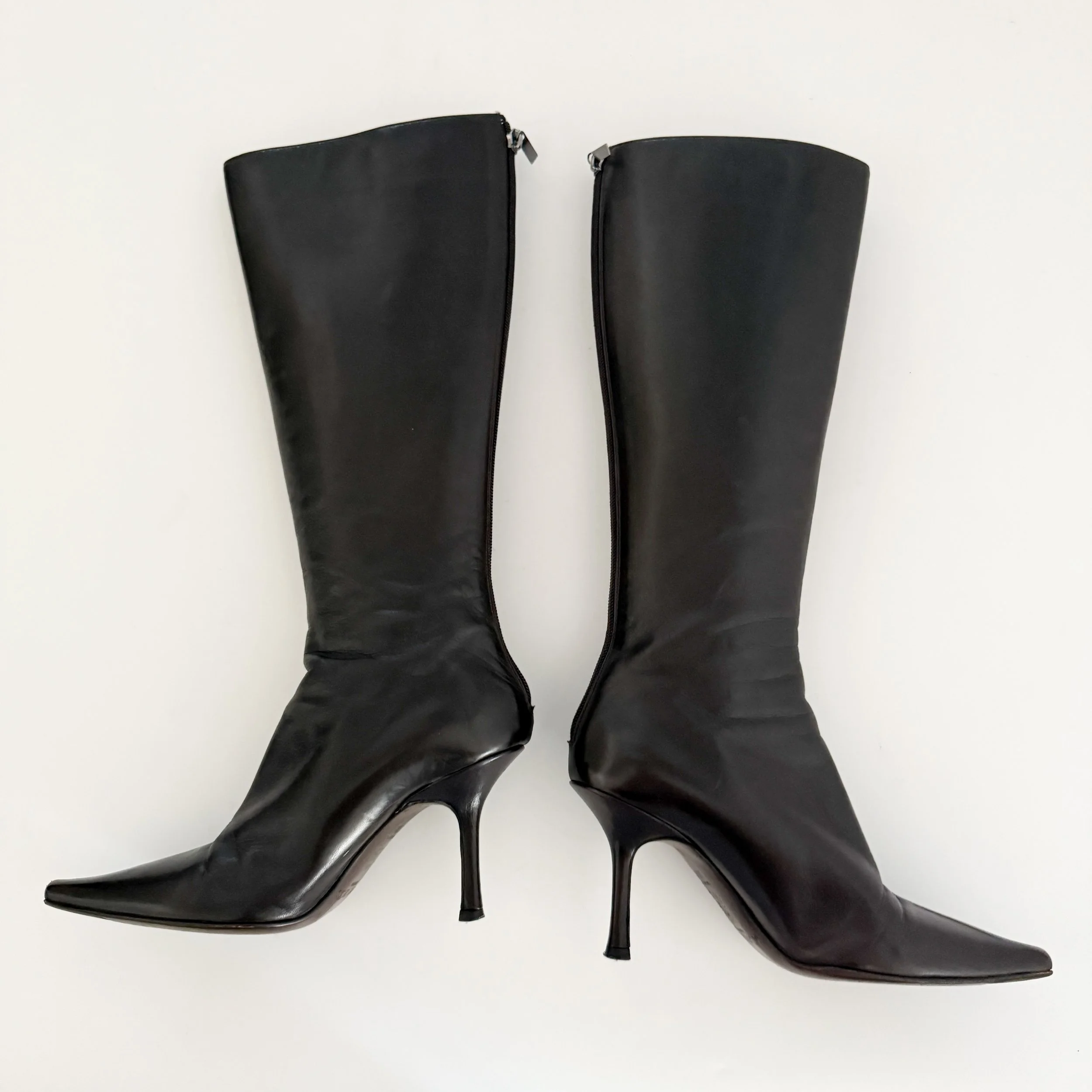 Manolo Blahnik Italian Black Leather Buckle Knee High Boot Heels (IT 36.5)