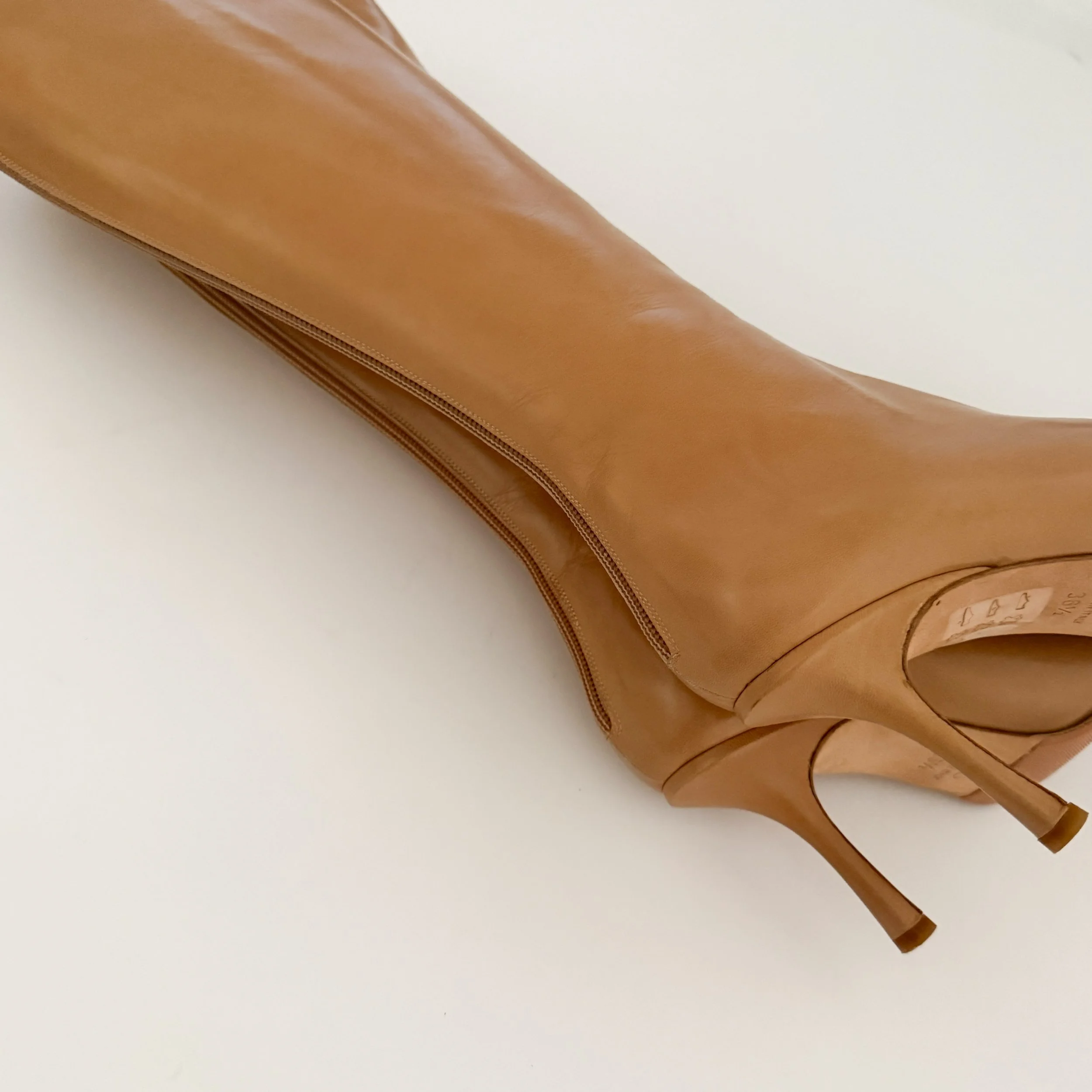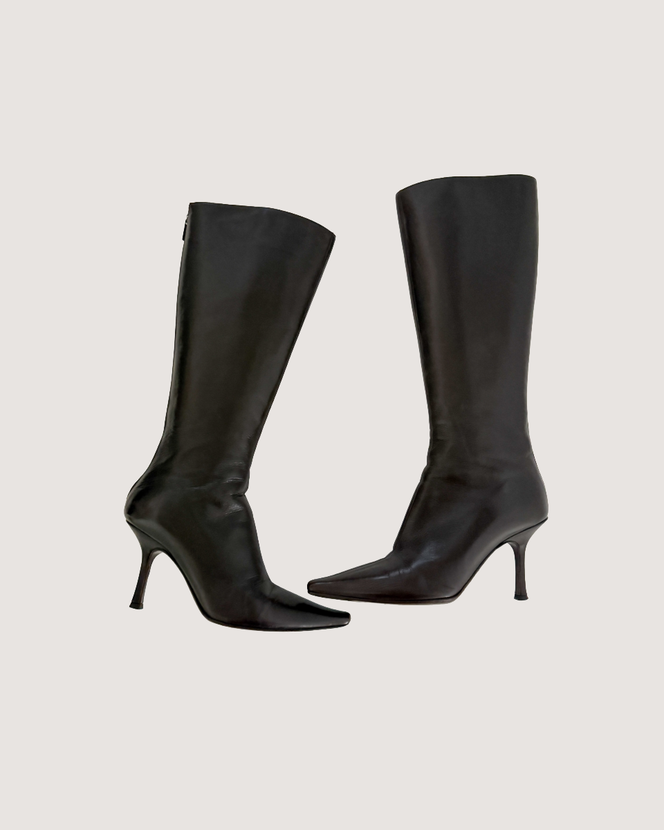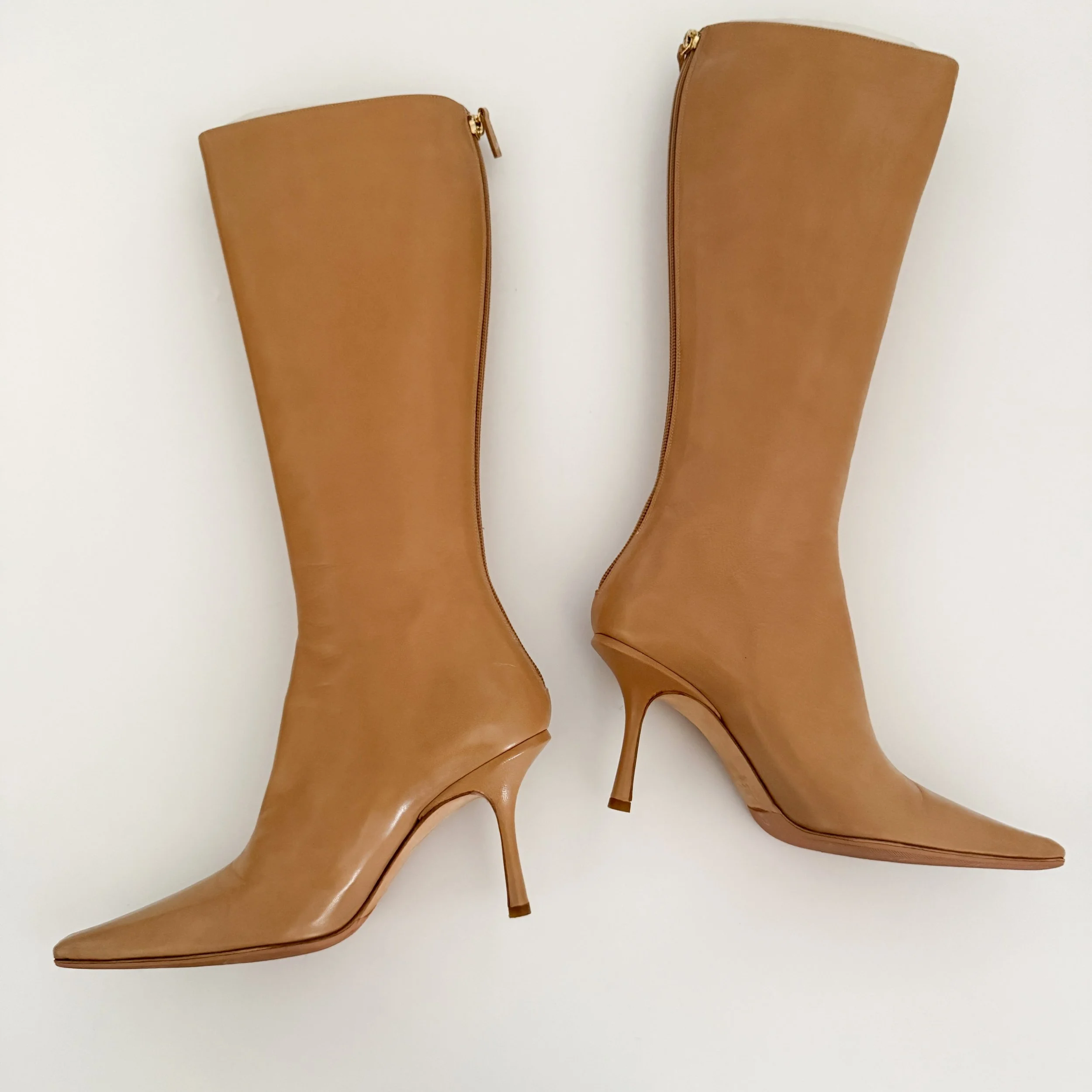 The most chic boot heels from luxury shoe designer Manolo Blahnik. A classic silhouette that never goes out of style. A versatile pair of boots to style in endless ways.