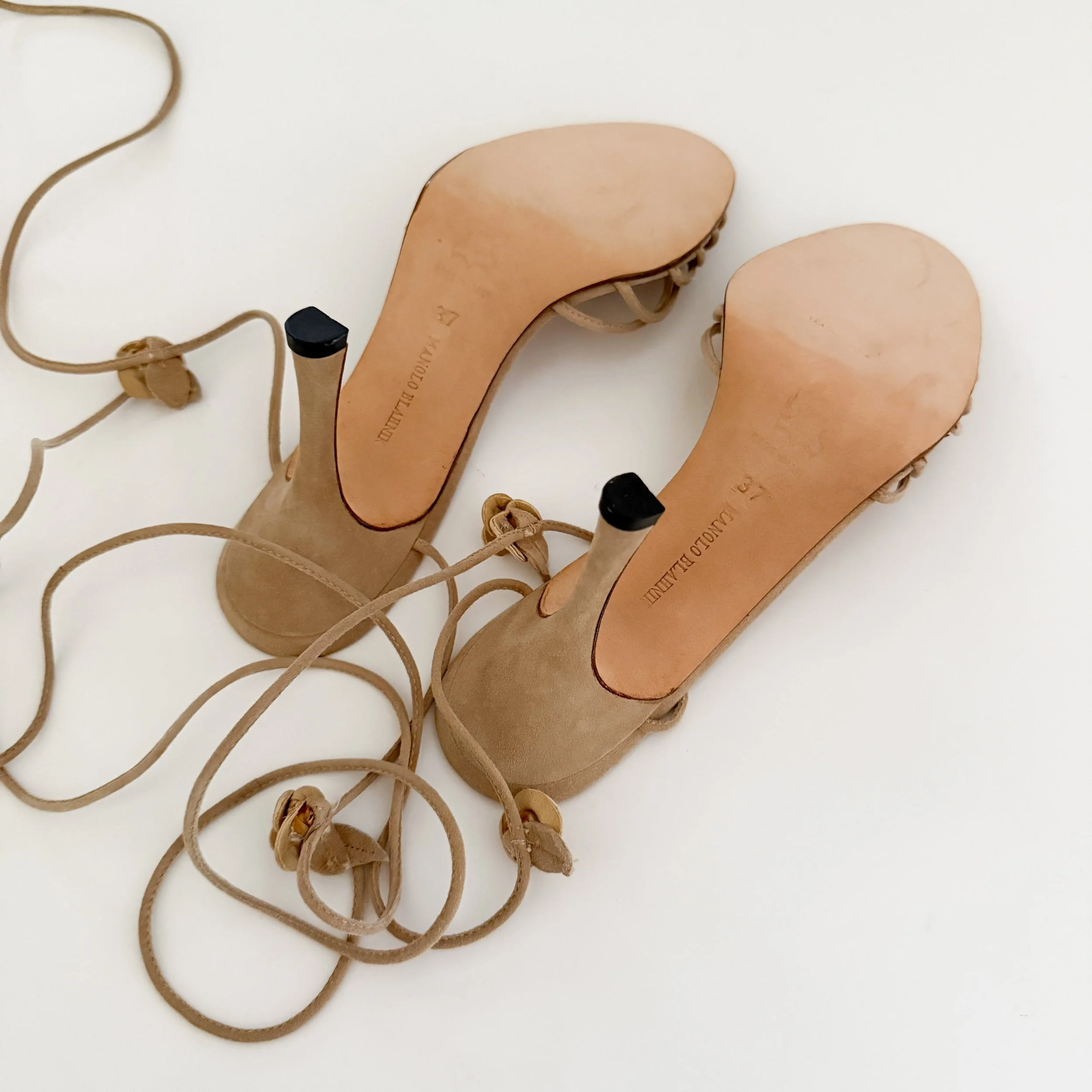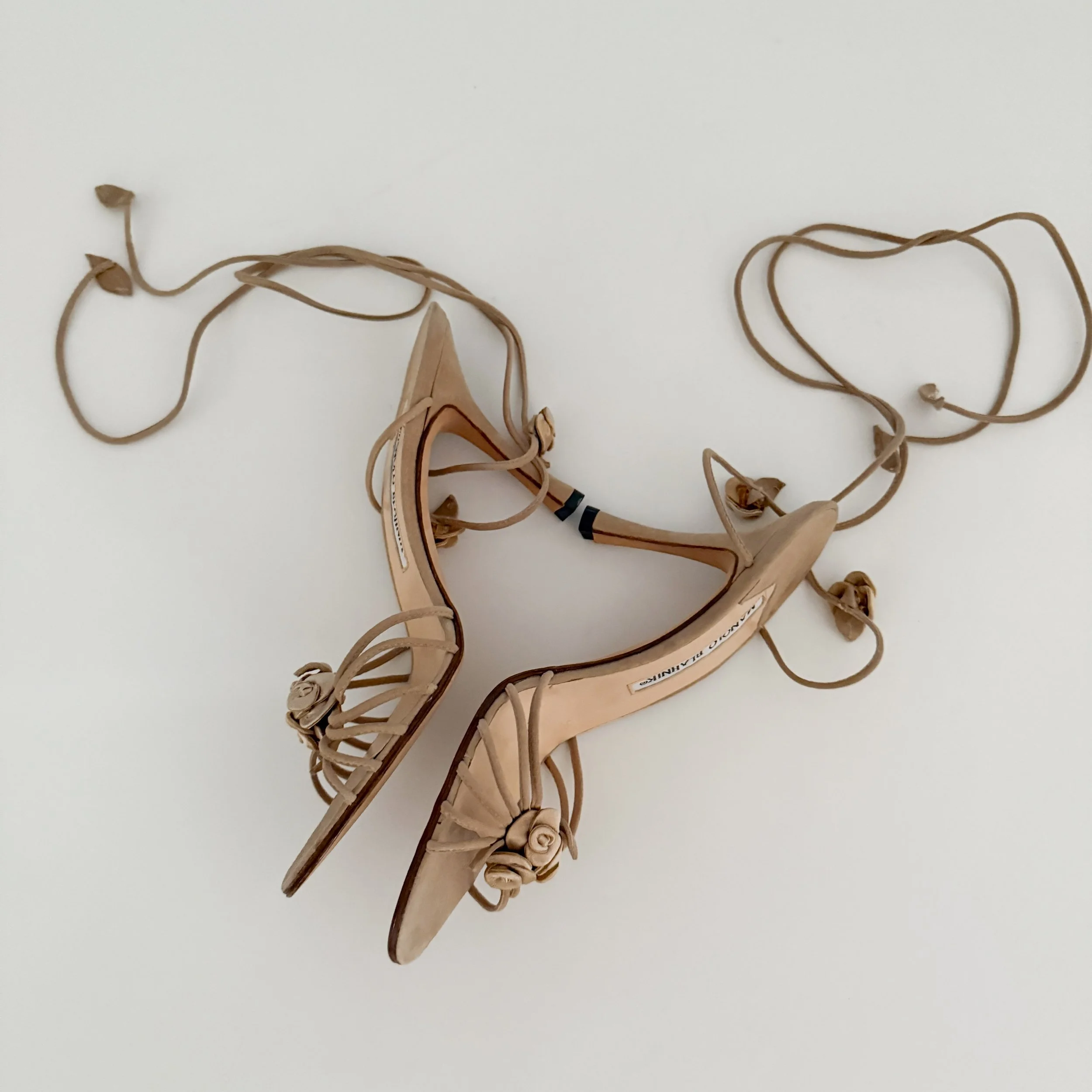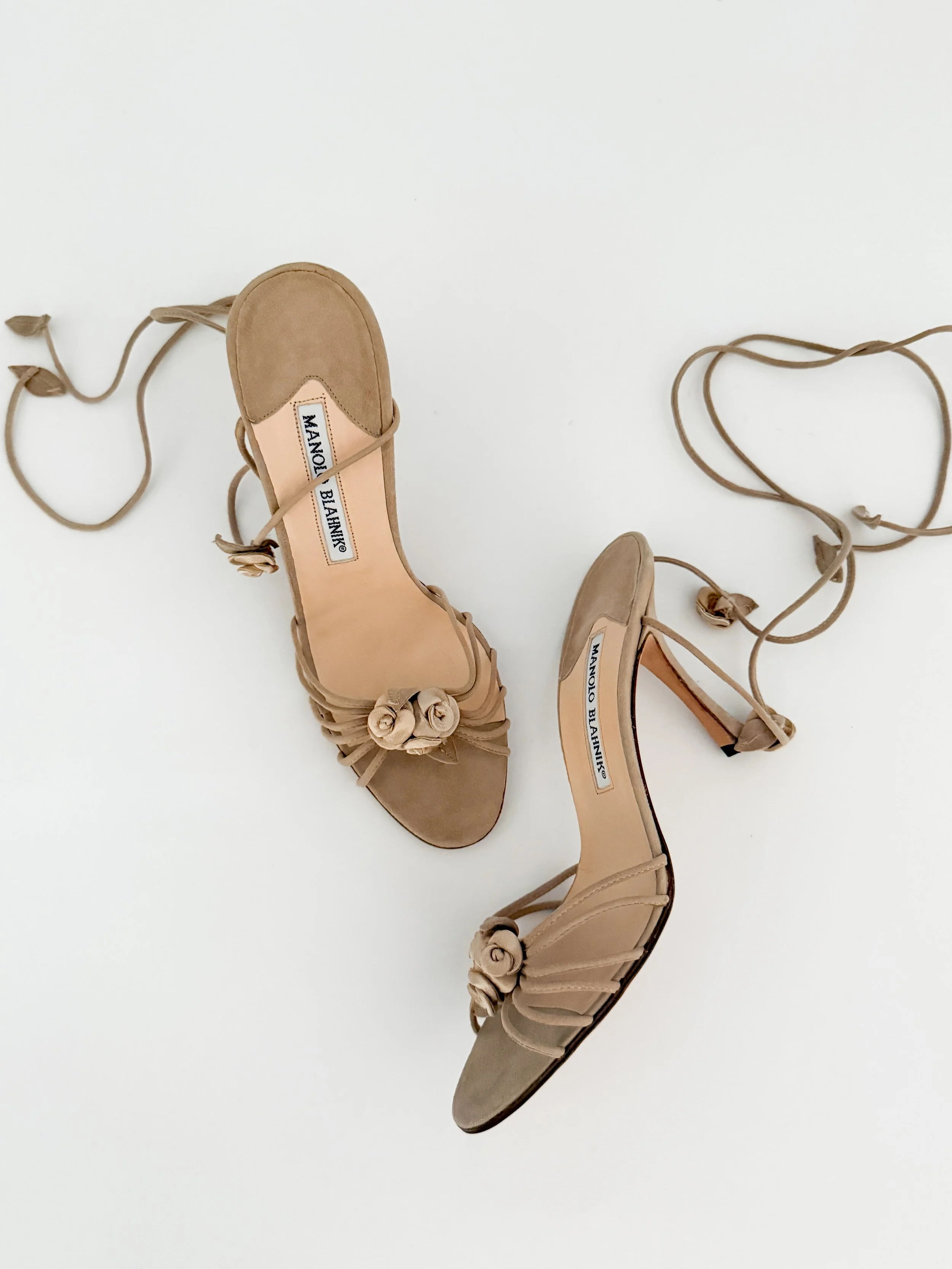 The most chic mule heels from iconic luxury shoe designer Manolo Blahnik. Can be styled both casually and formally in endless ways. A pair of heels to treasure forever.