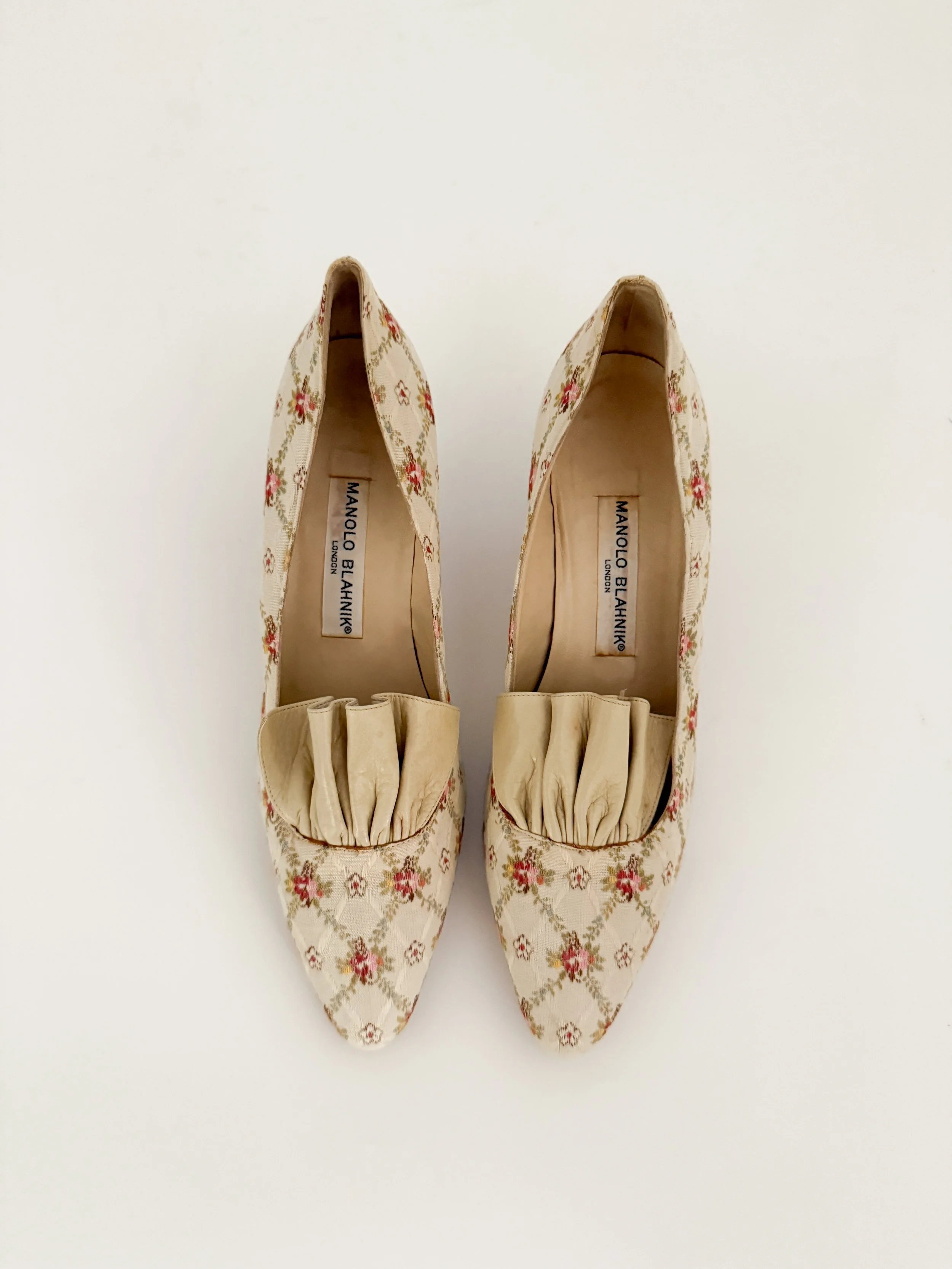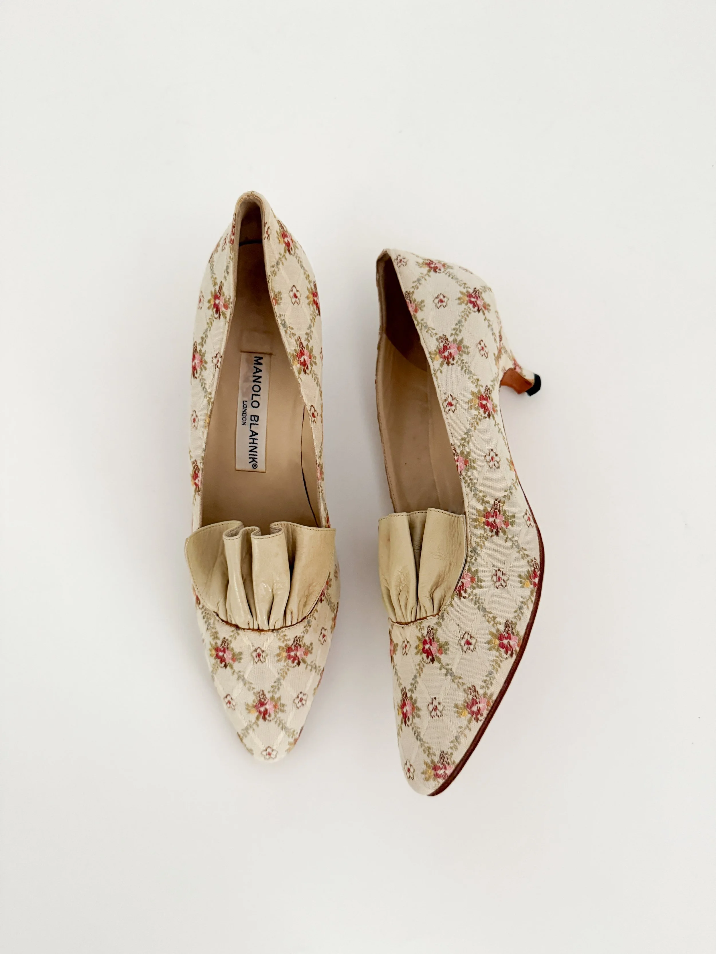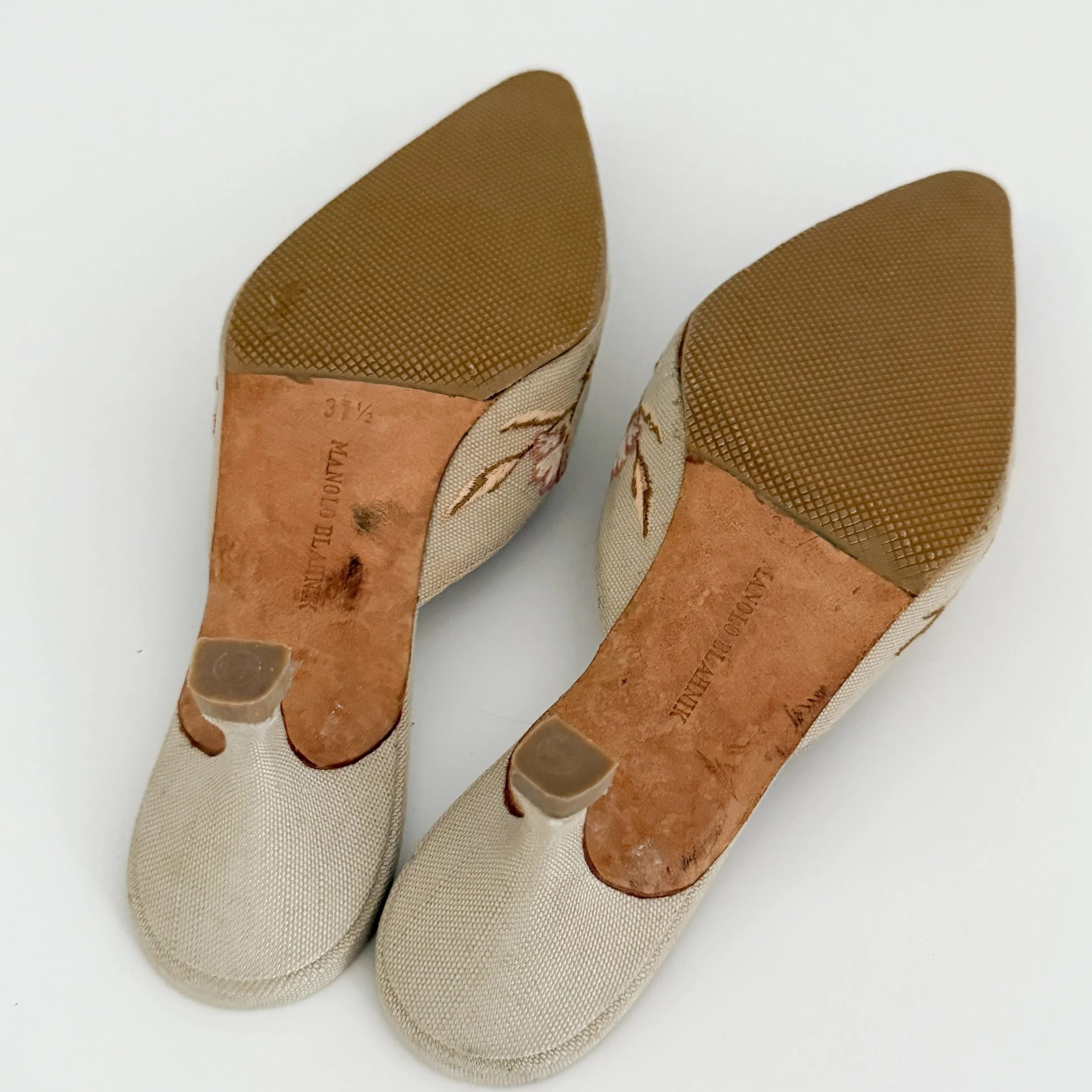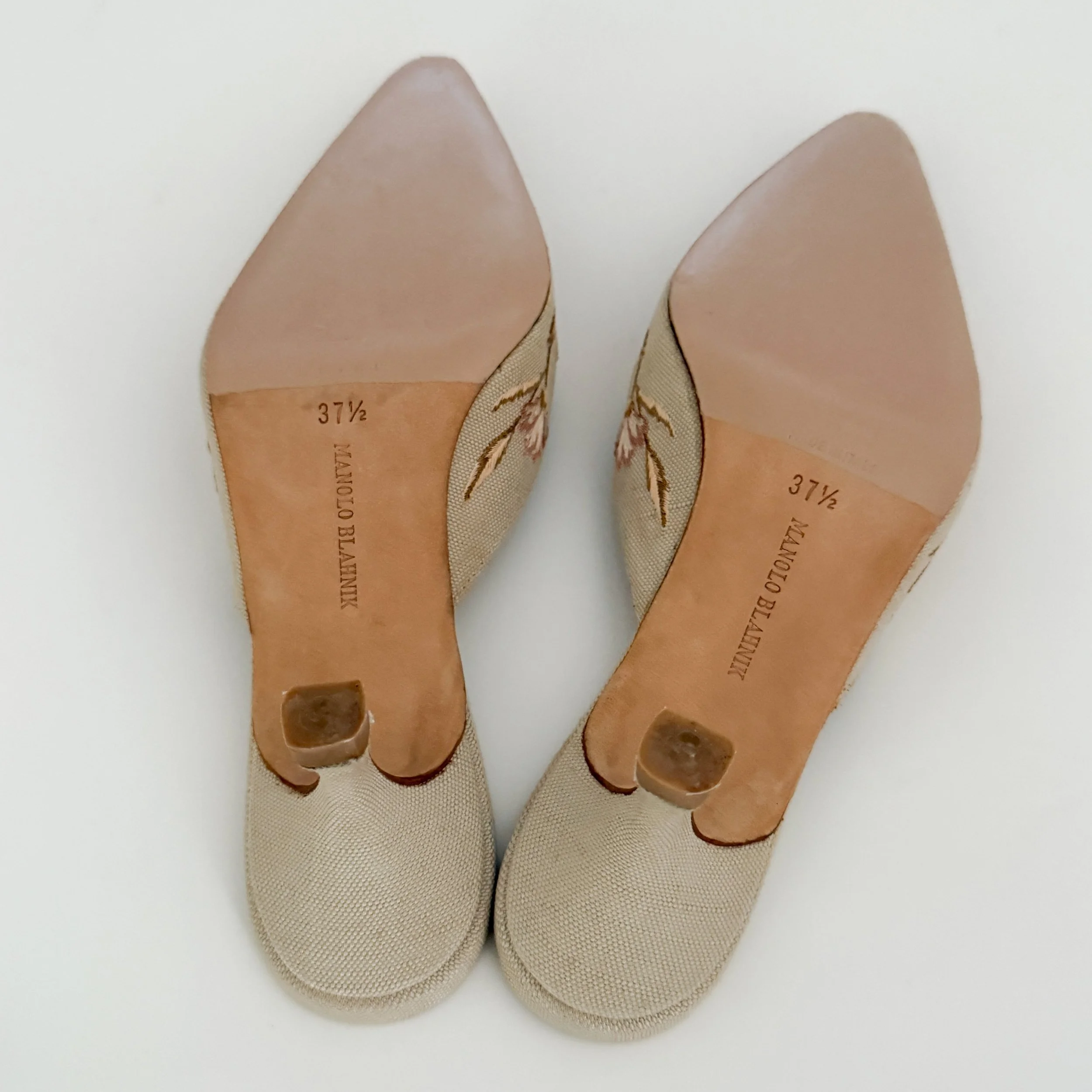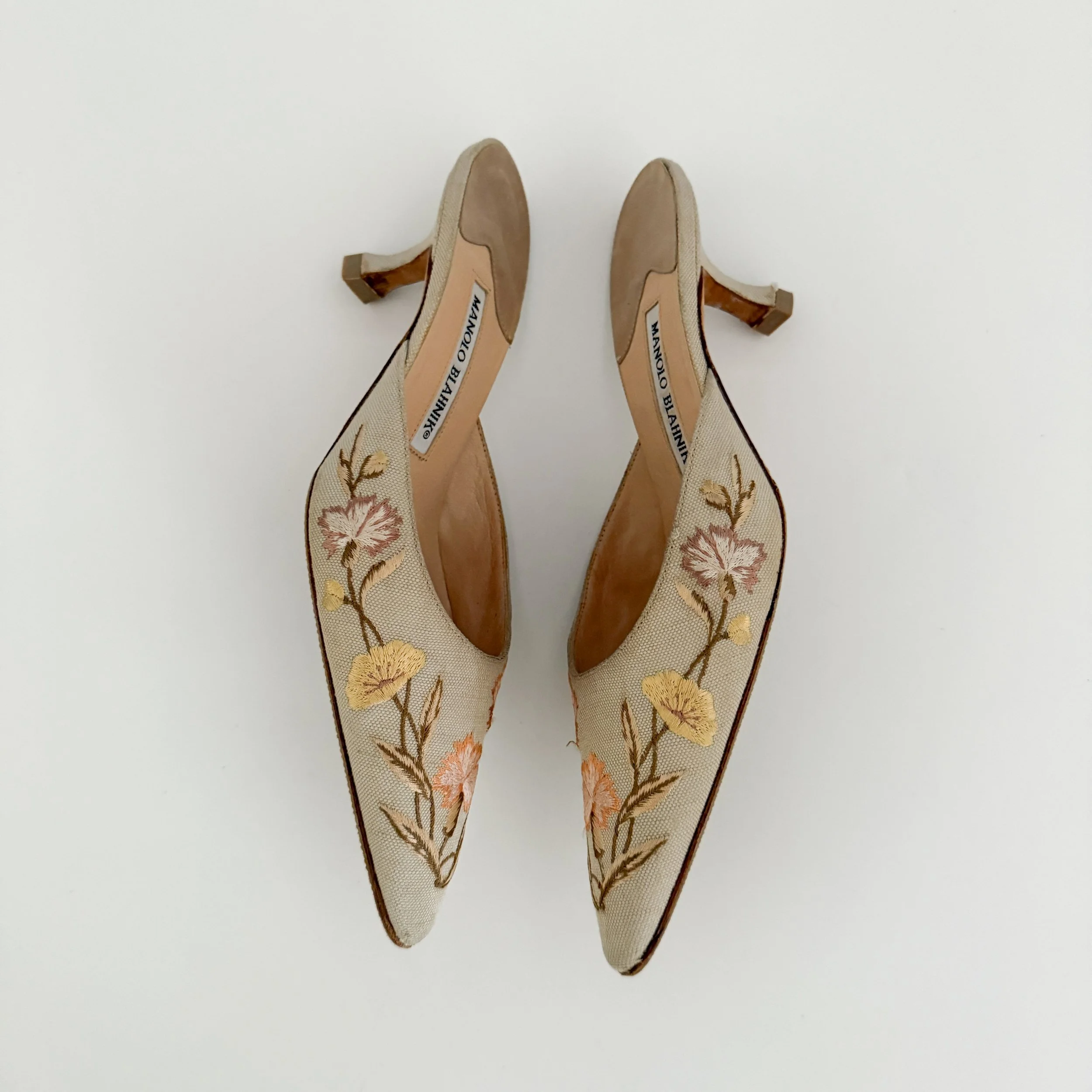 The most chic mule heels from iconic luxury shoe designer Manolo Blahnik. Can be styled both casually and formally in endless ways. Perfect for year ‘round wear. A pair of heels to treasure forever.