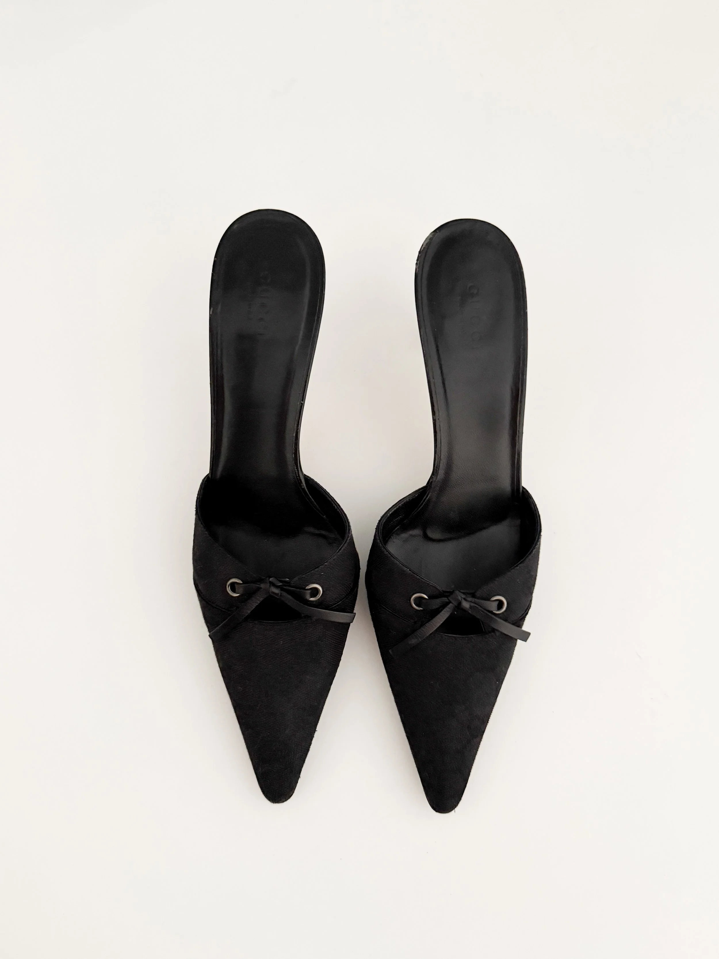 Manolo Blahnik Vintage Pony Hair Animal Print Bow Mule Heels (US 6.5 / IT 37.5)