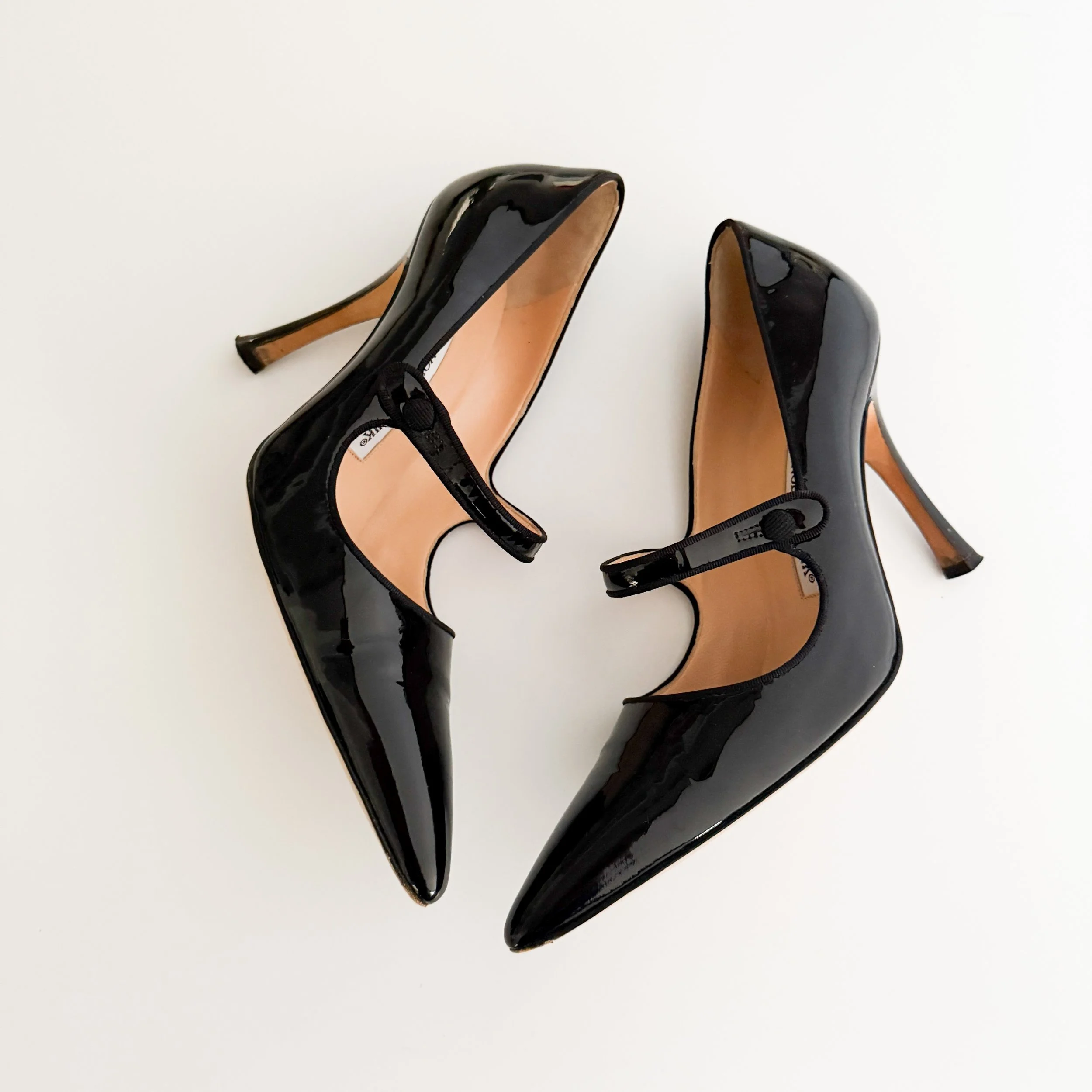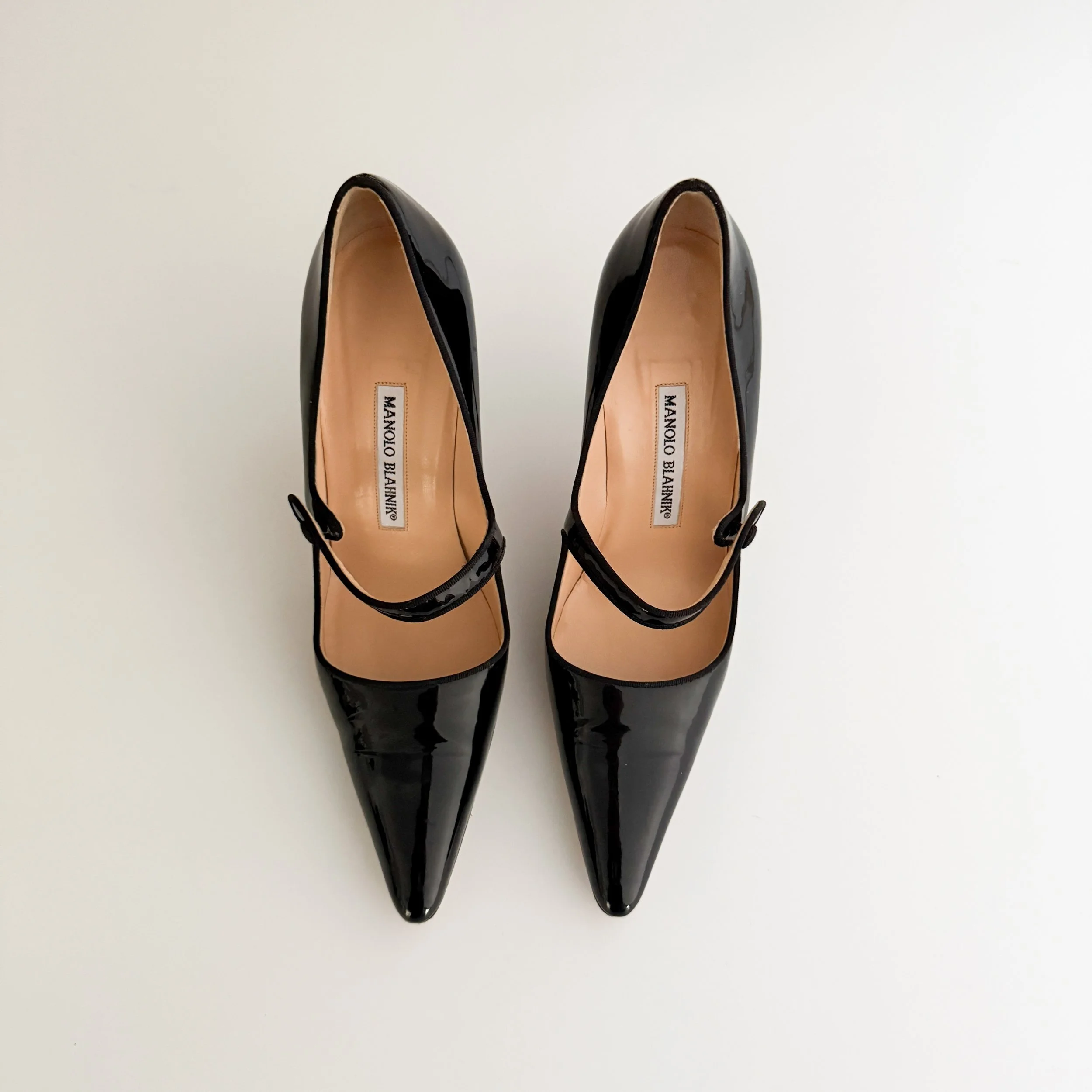 Manolo Blahnik Iconic Black Patent Leather Mary Jane Heels (US 7.5 / IT 37.5)