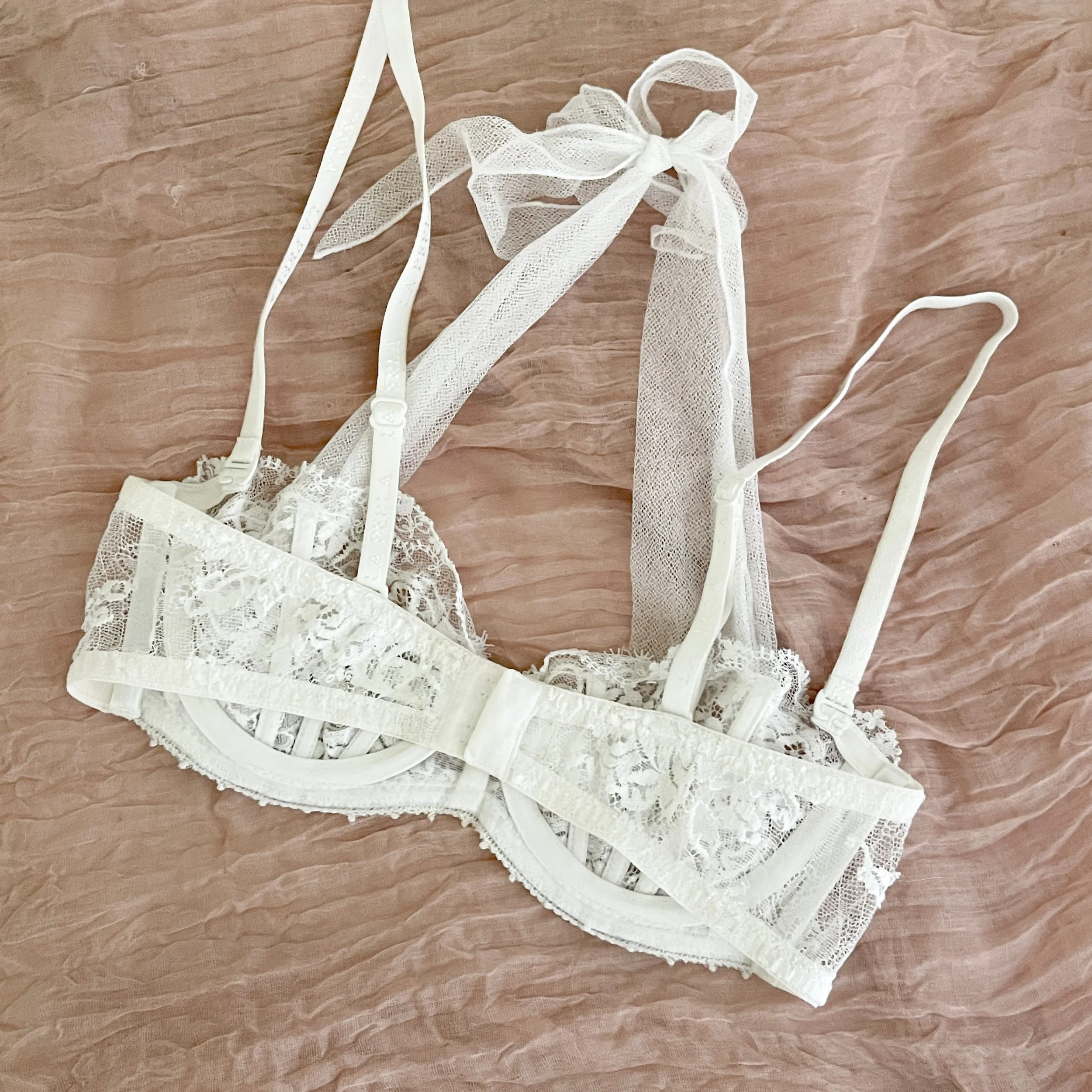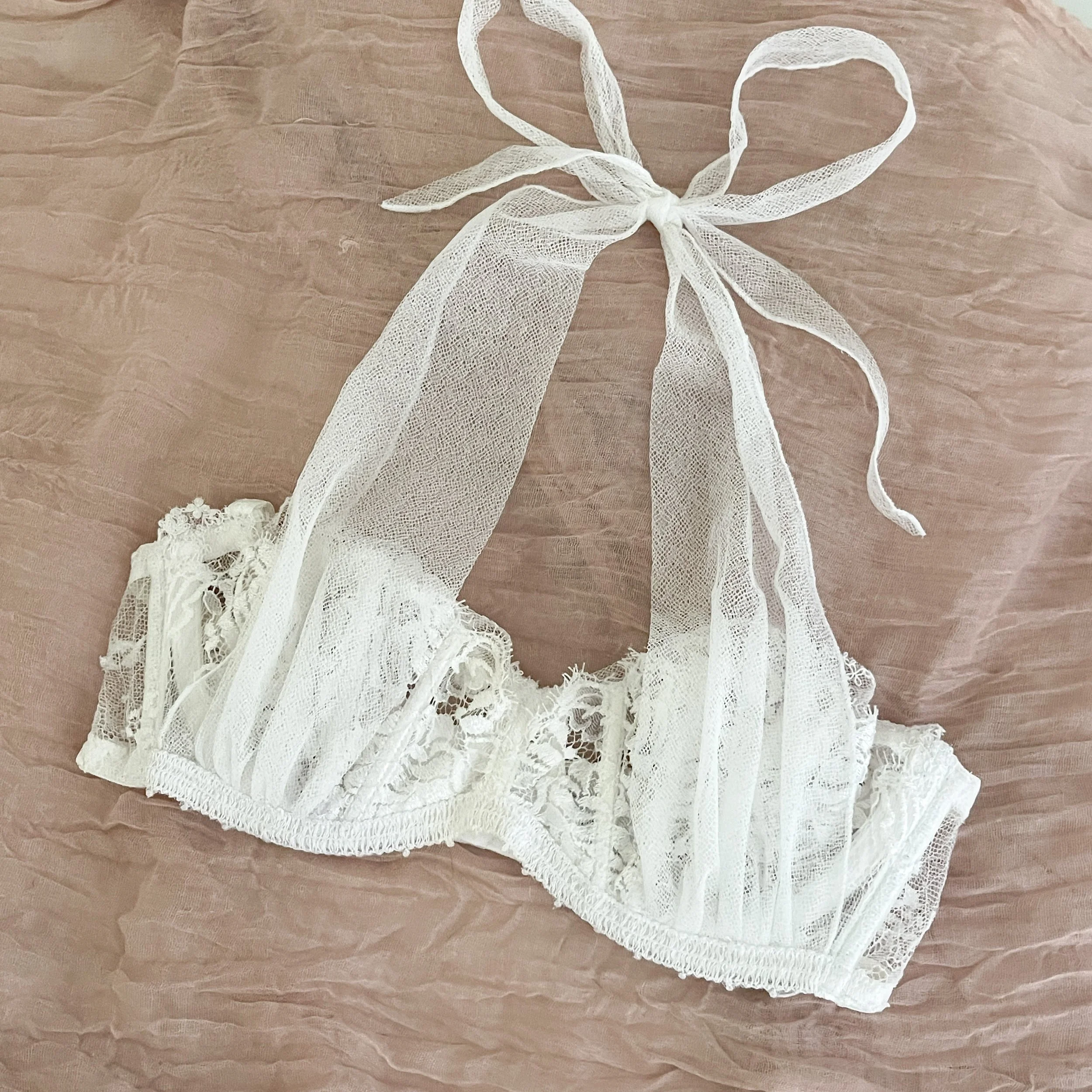 La Perla Luxurious White Tied Mesh Lace Bra (34B/32C/36A)