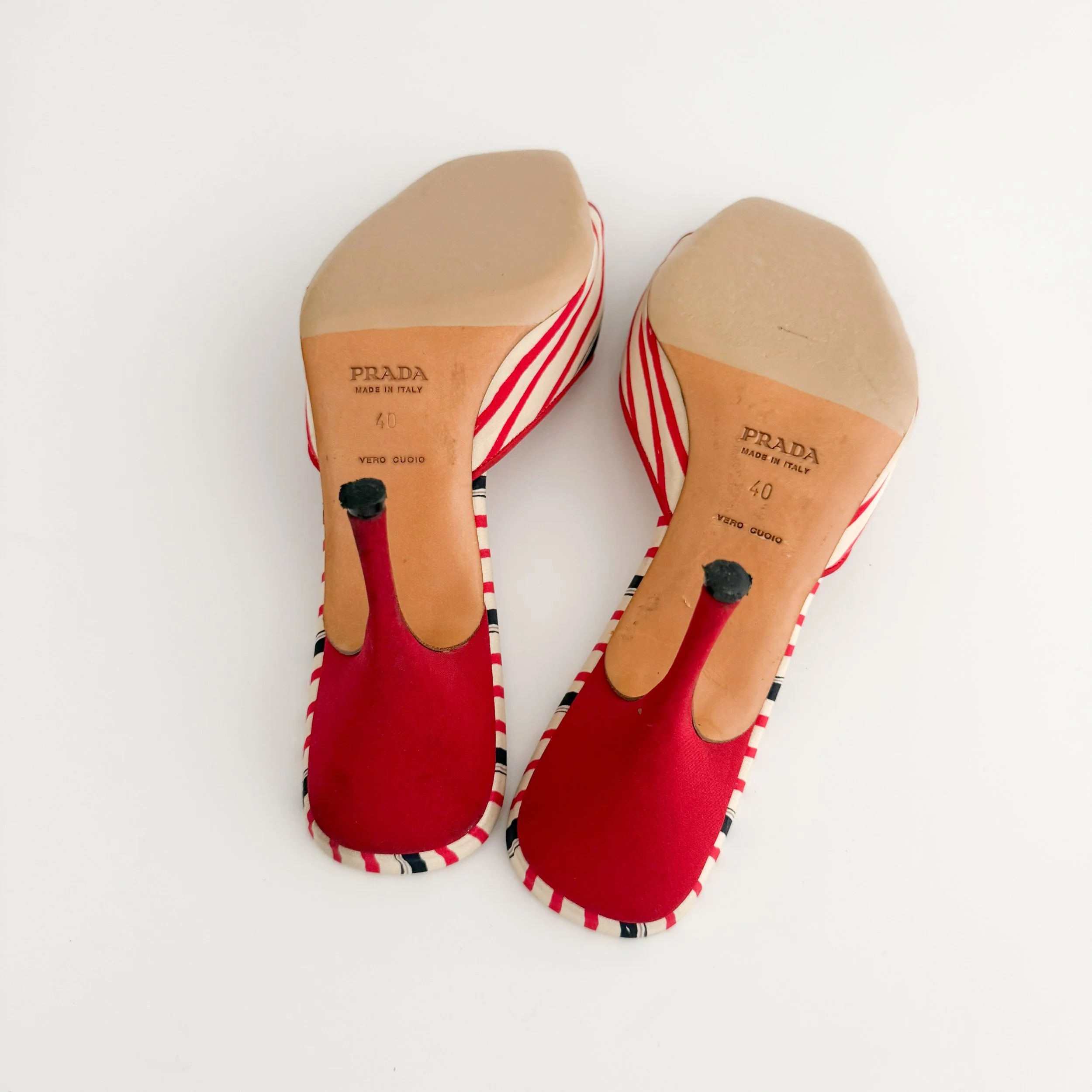Prada Vintage Striped Bow Sandal Heels (US 10 / IT 40)