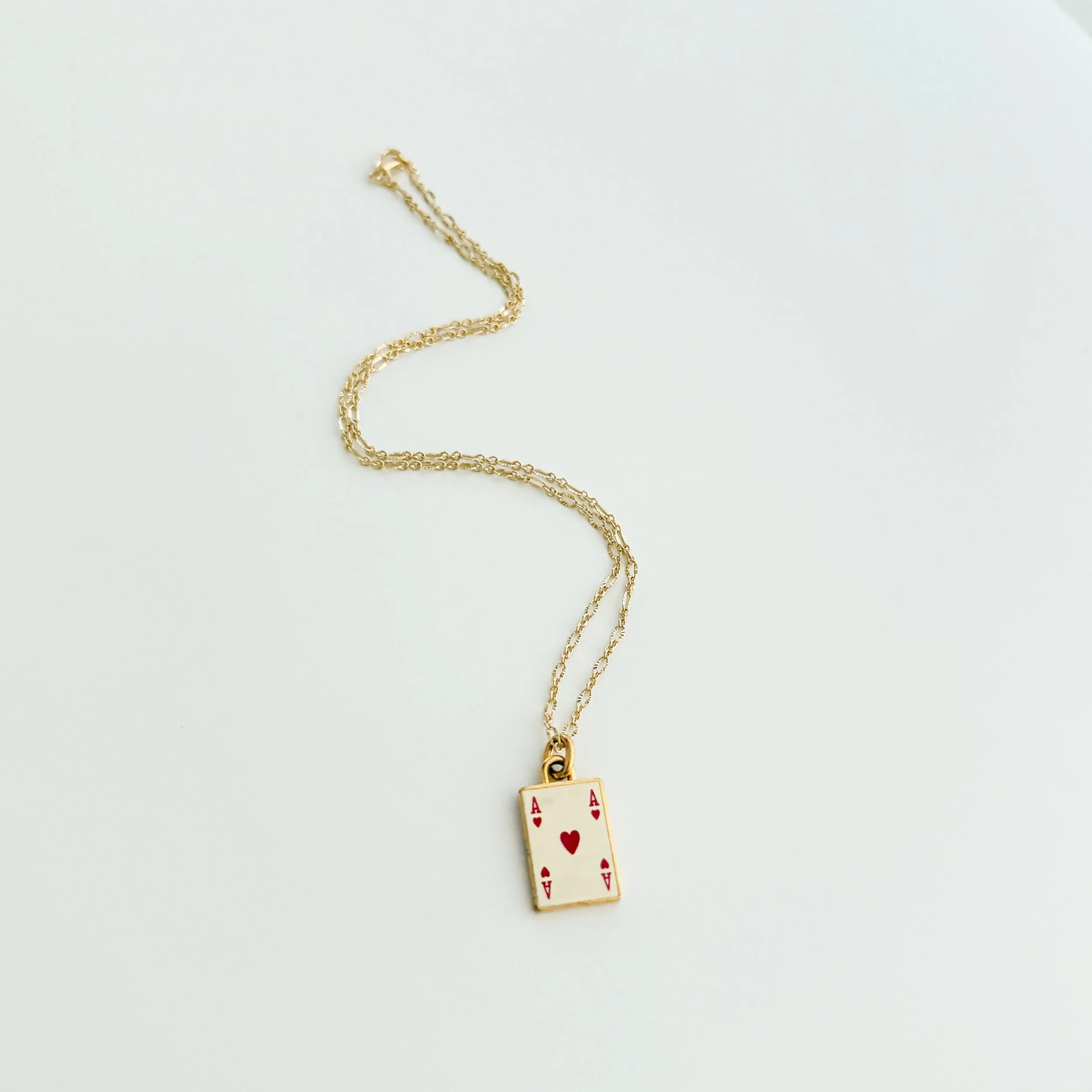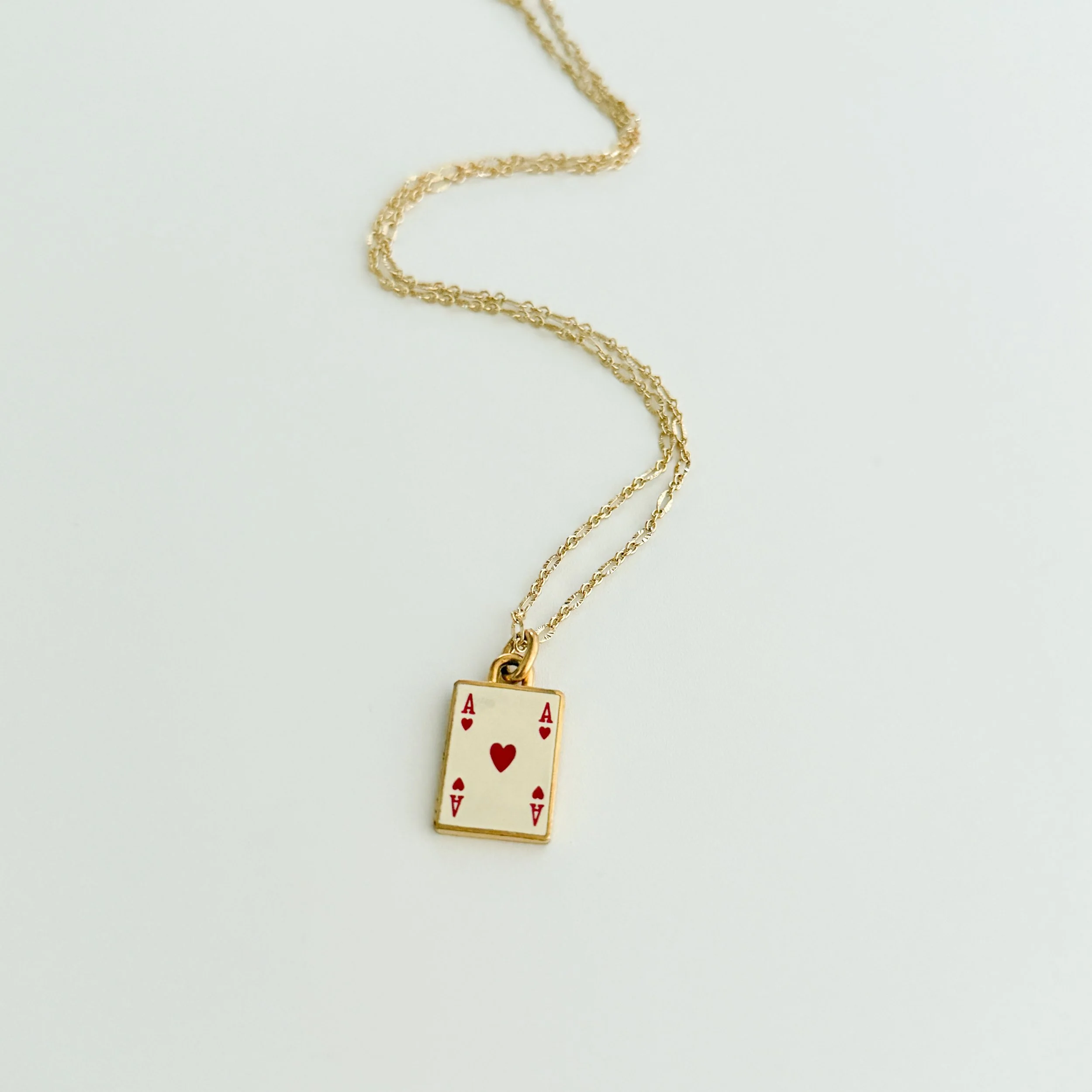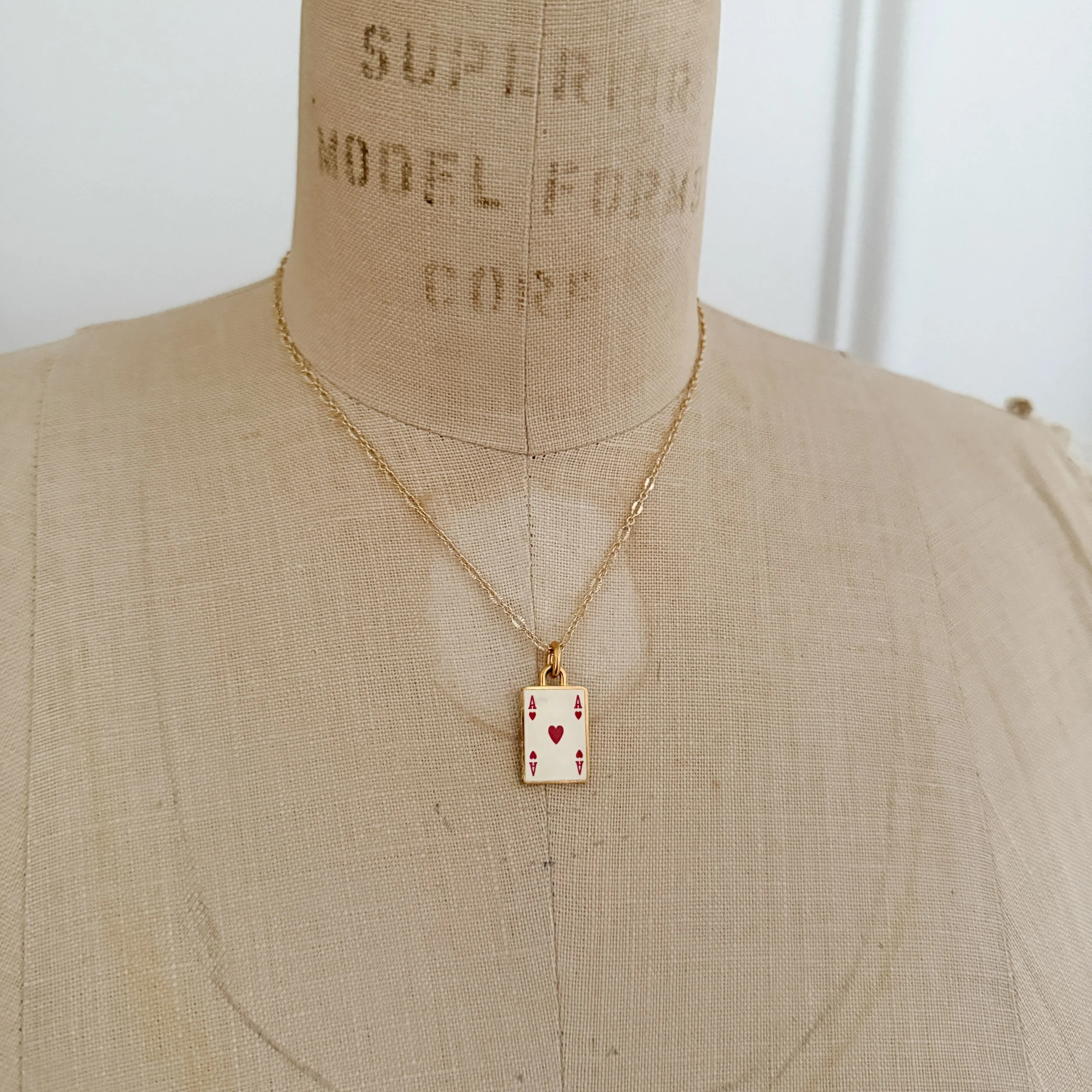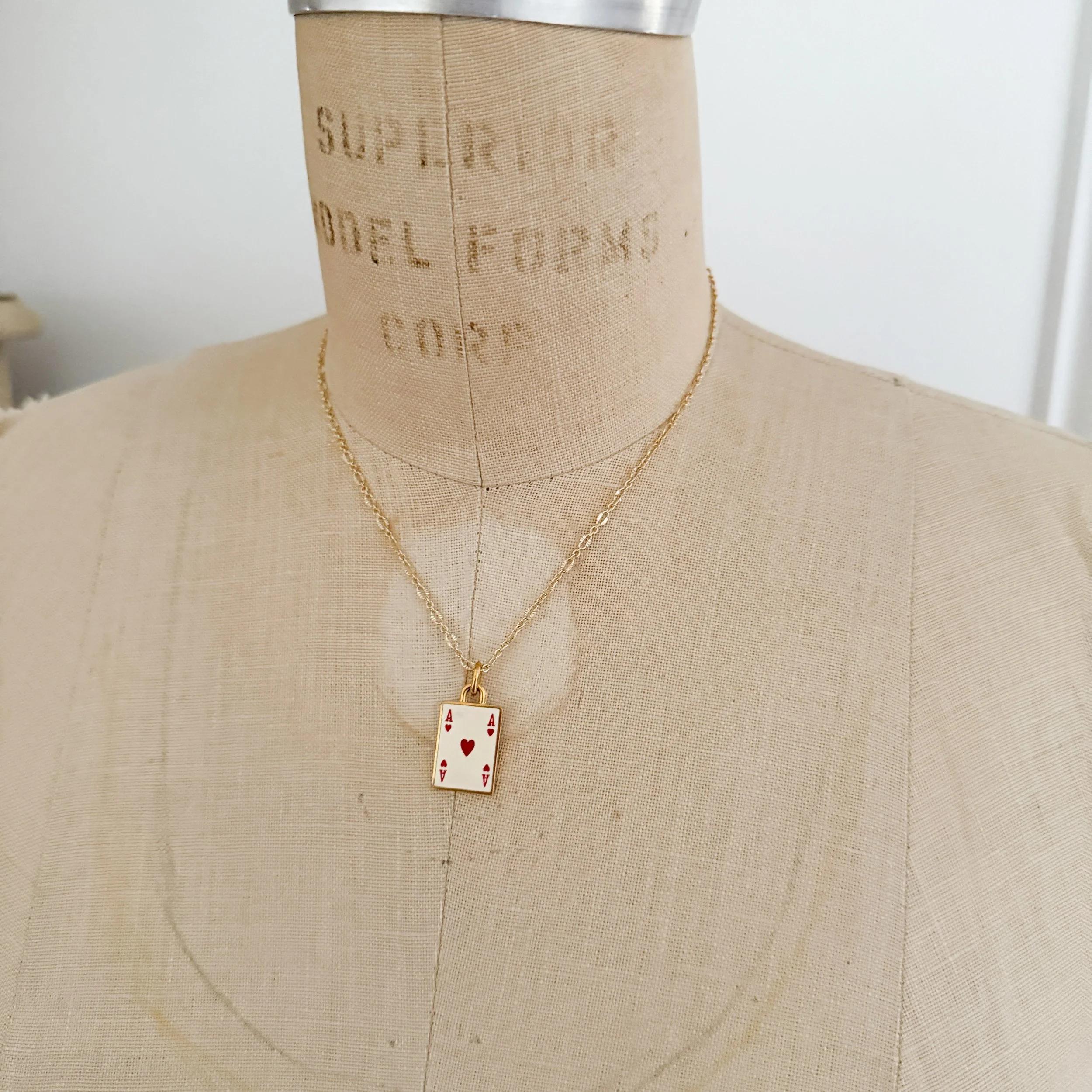 Prada Vintage Ace of Hearts Playing Card Reworked Charm Necklace