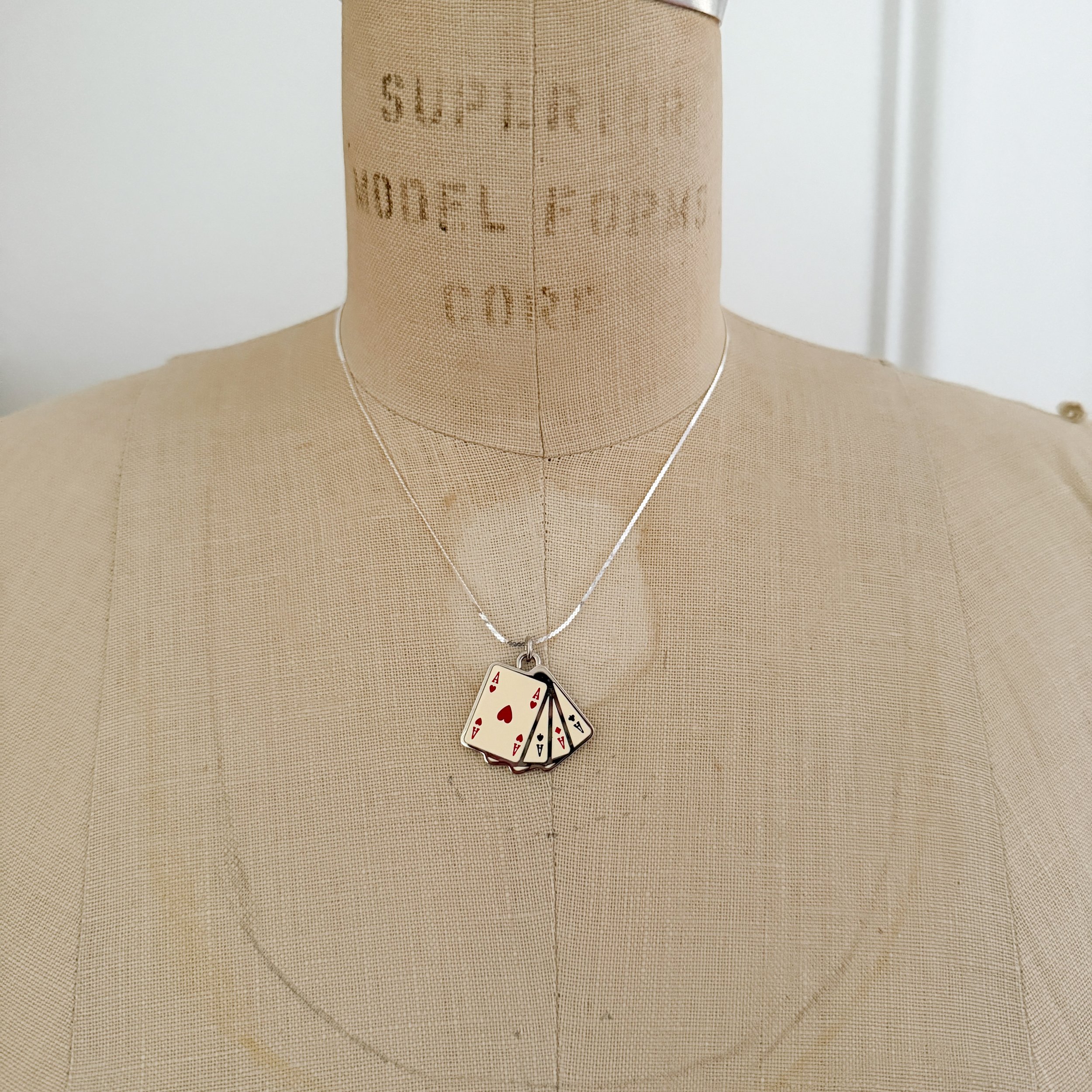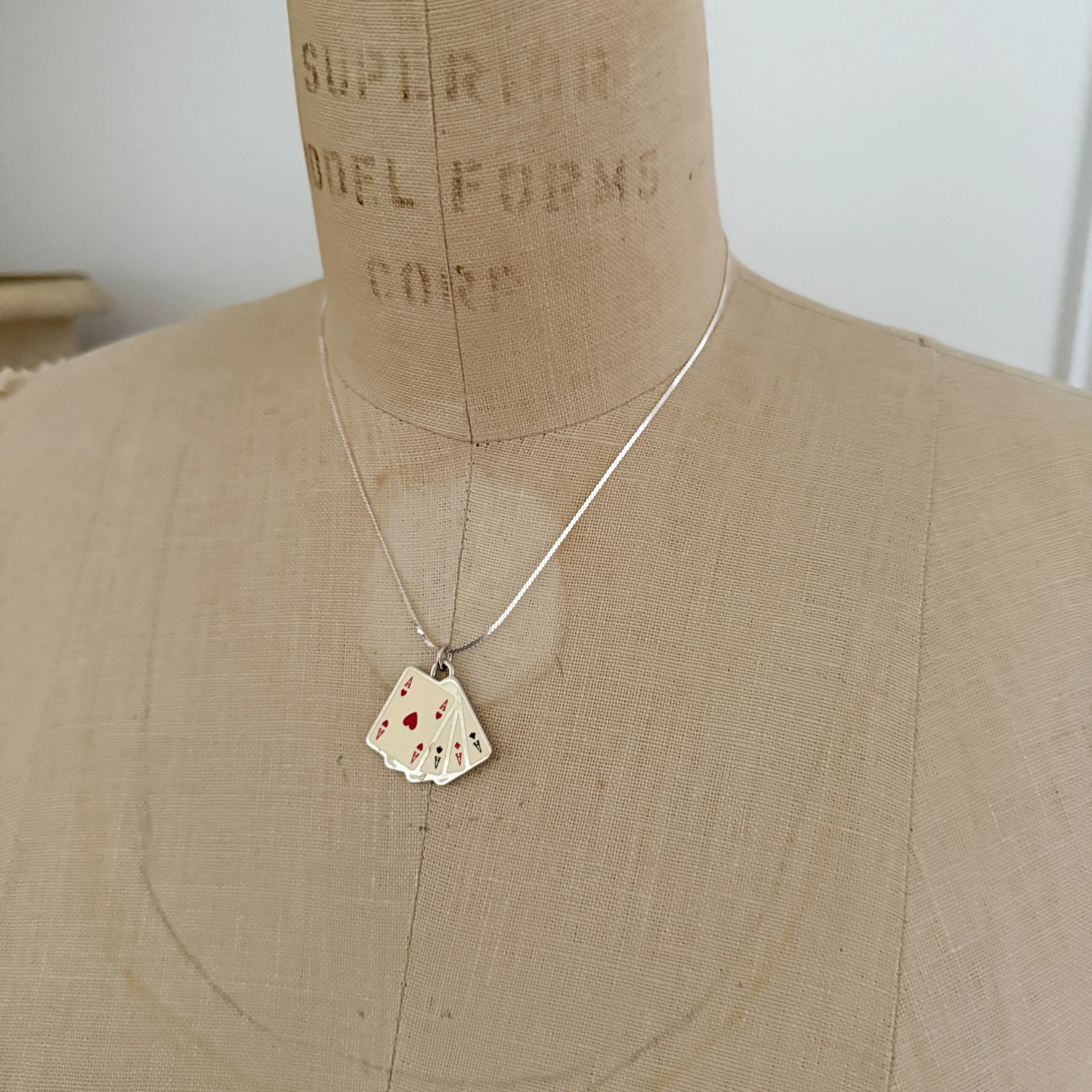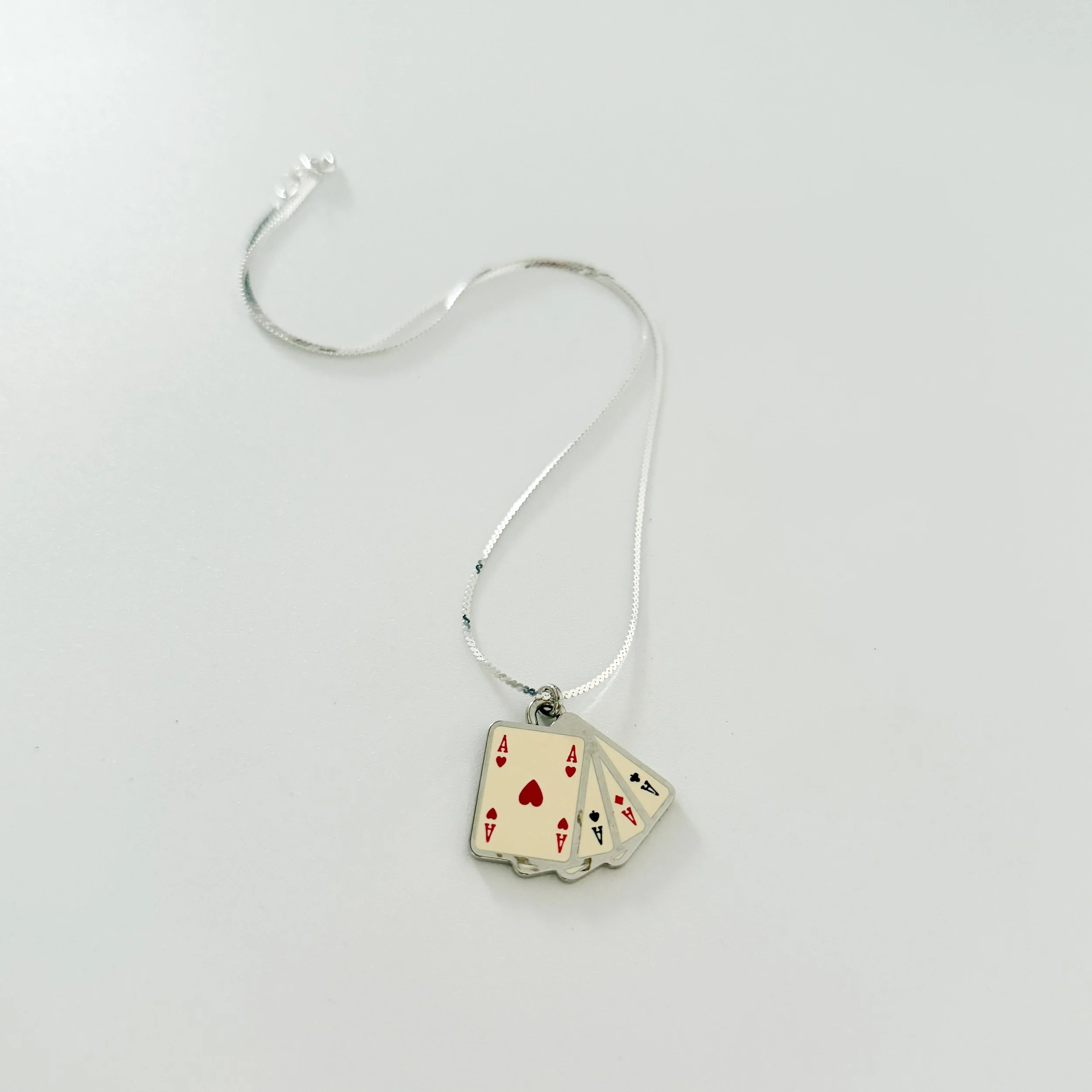 Prada Sterling Silver Aces Playing Cards Reworked Charm Necklace