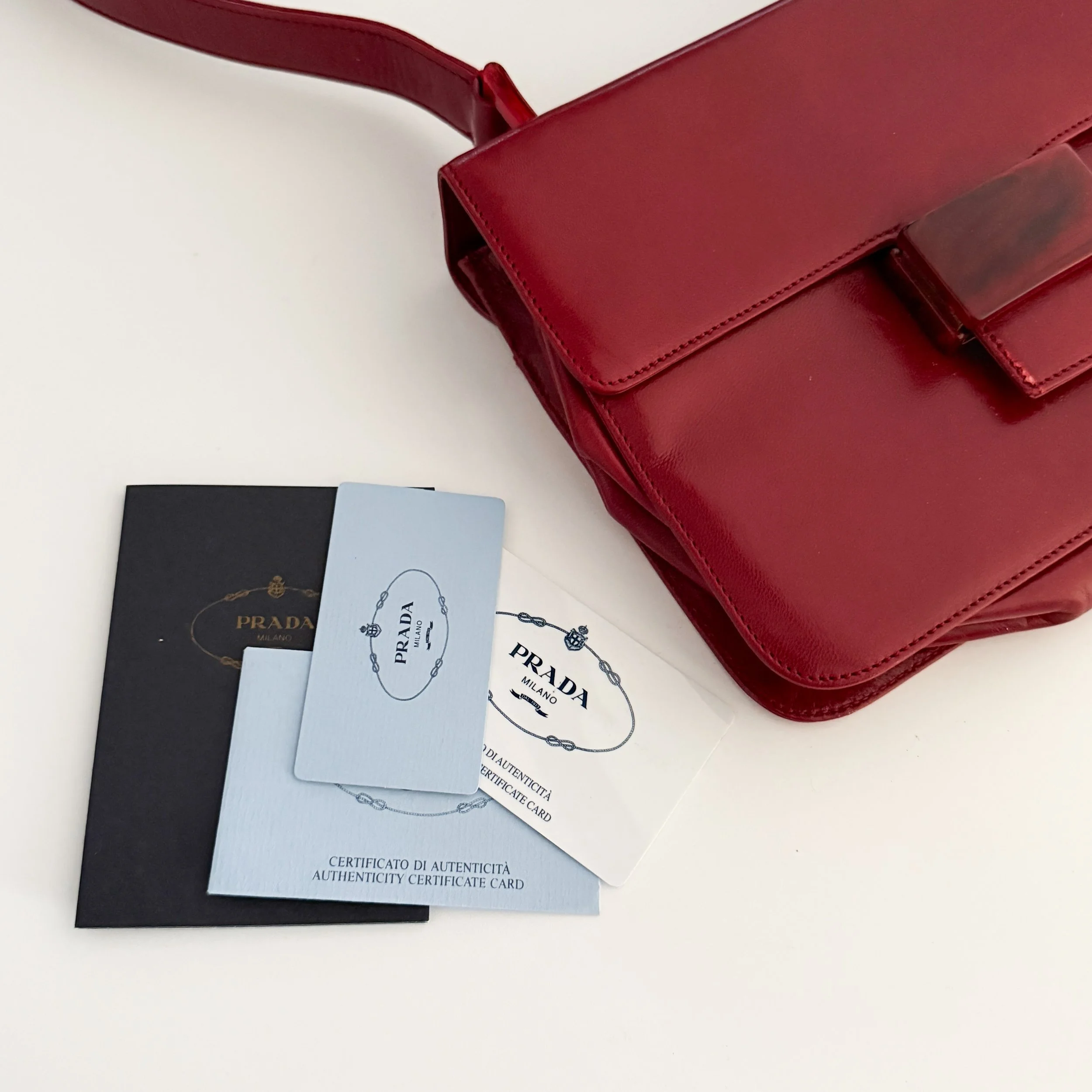 The most chic vintage leather purse from luxury Italian fashion house Prada.
