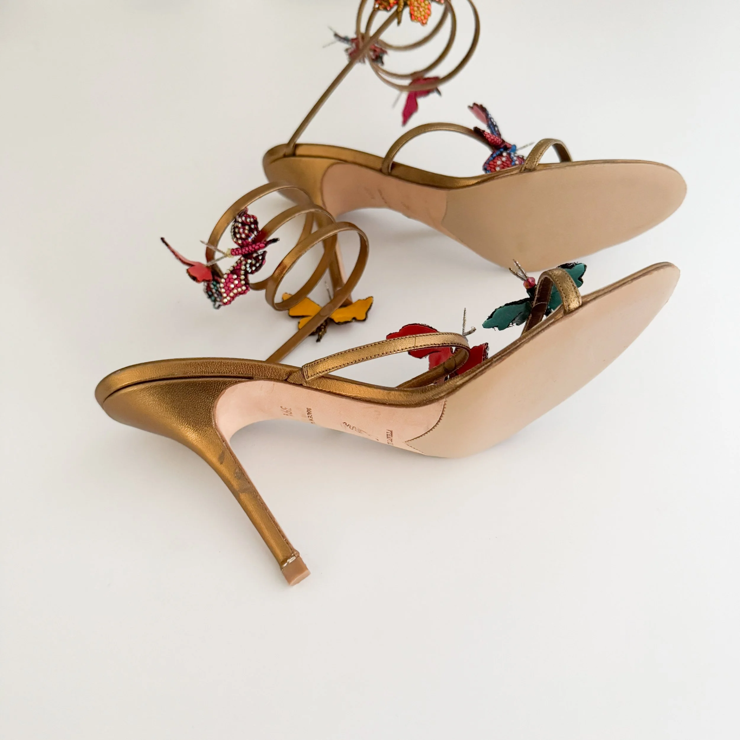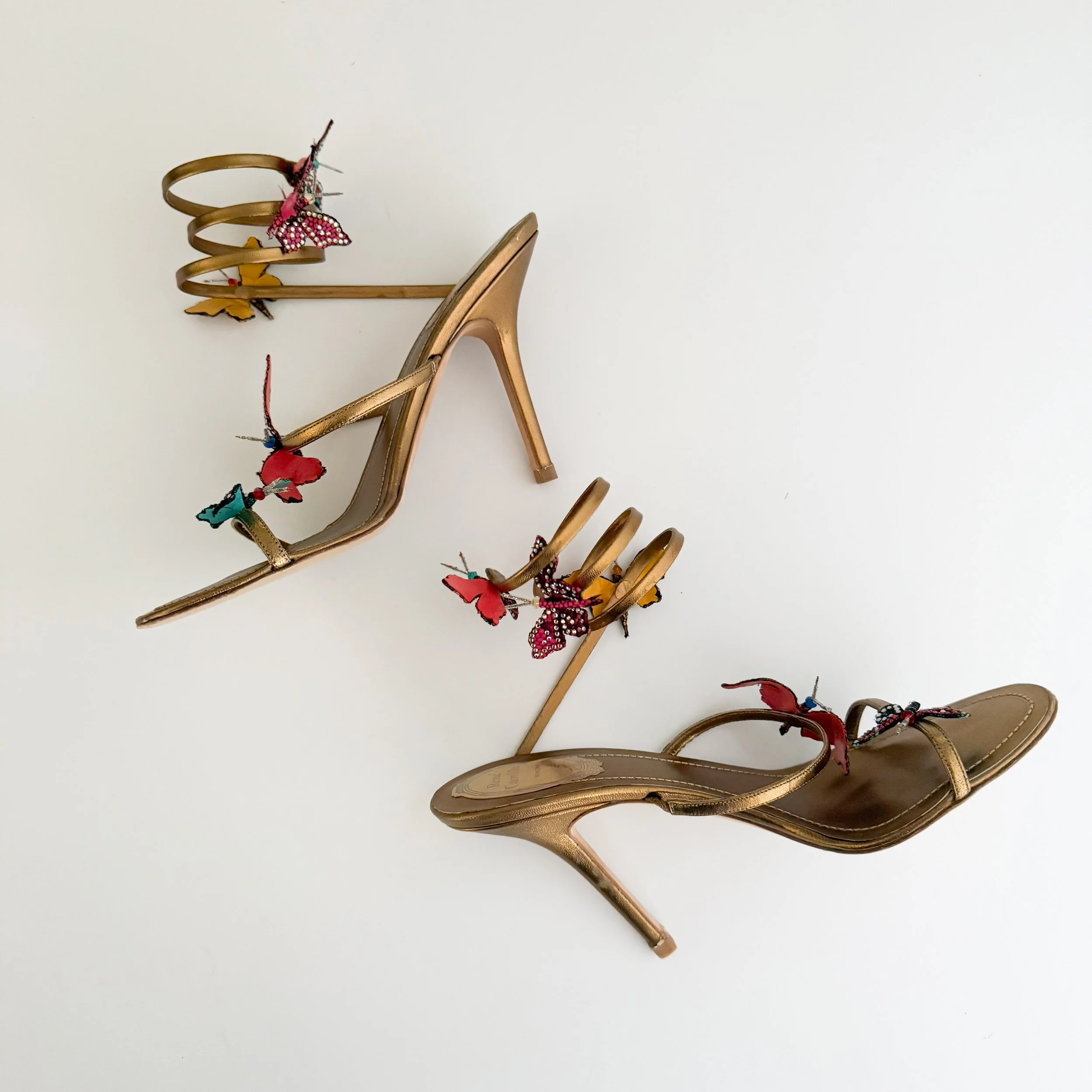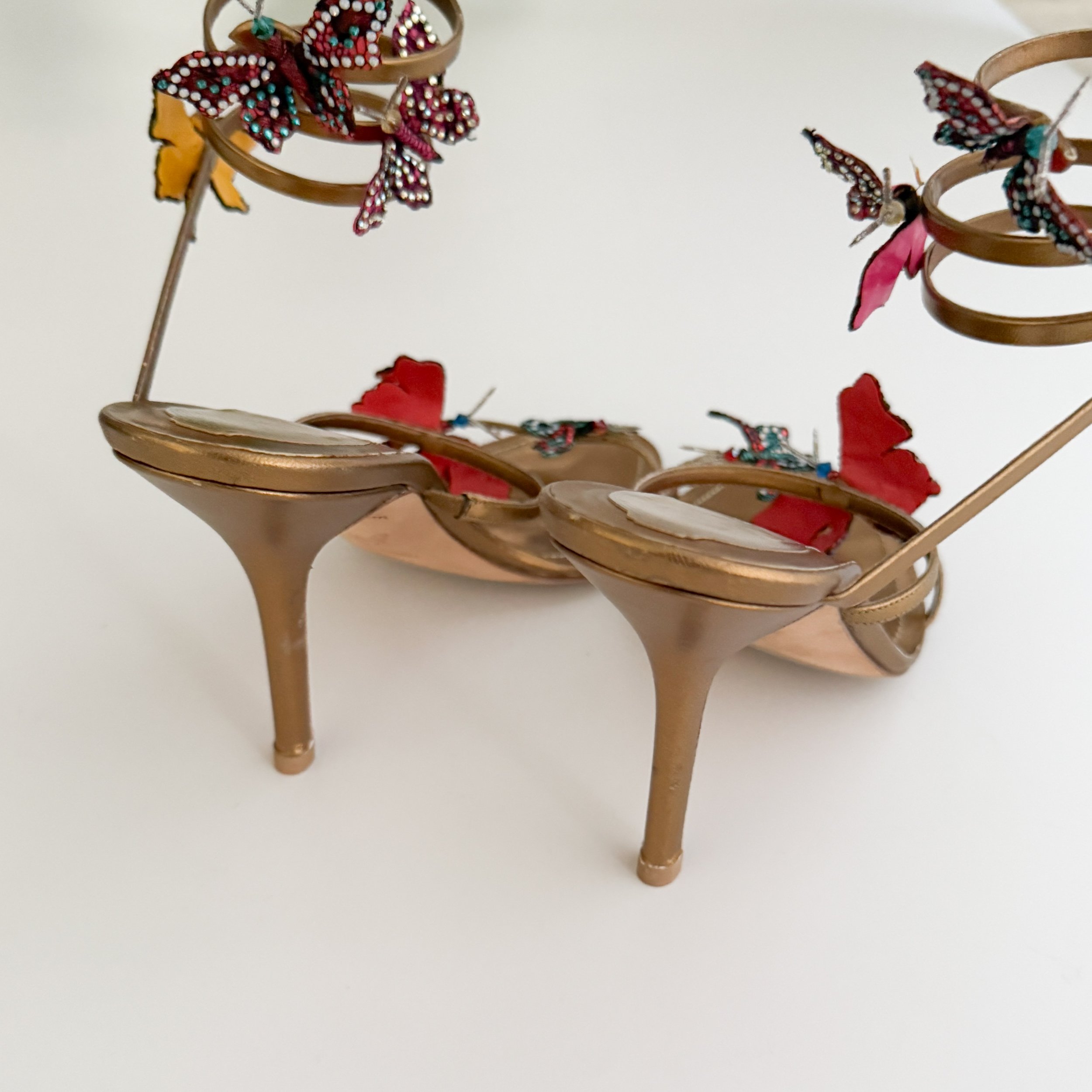 René Caovilla Luxurious Bronze Butterfly Wrap Heels (US 9 - 9.5 / IT 39.5)