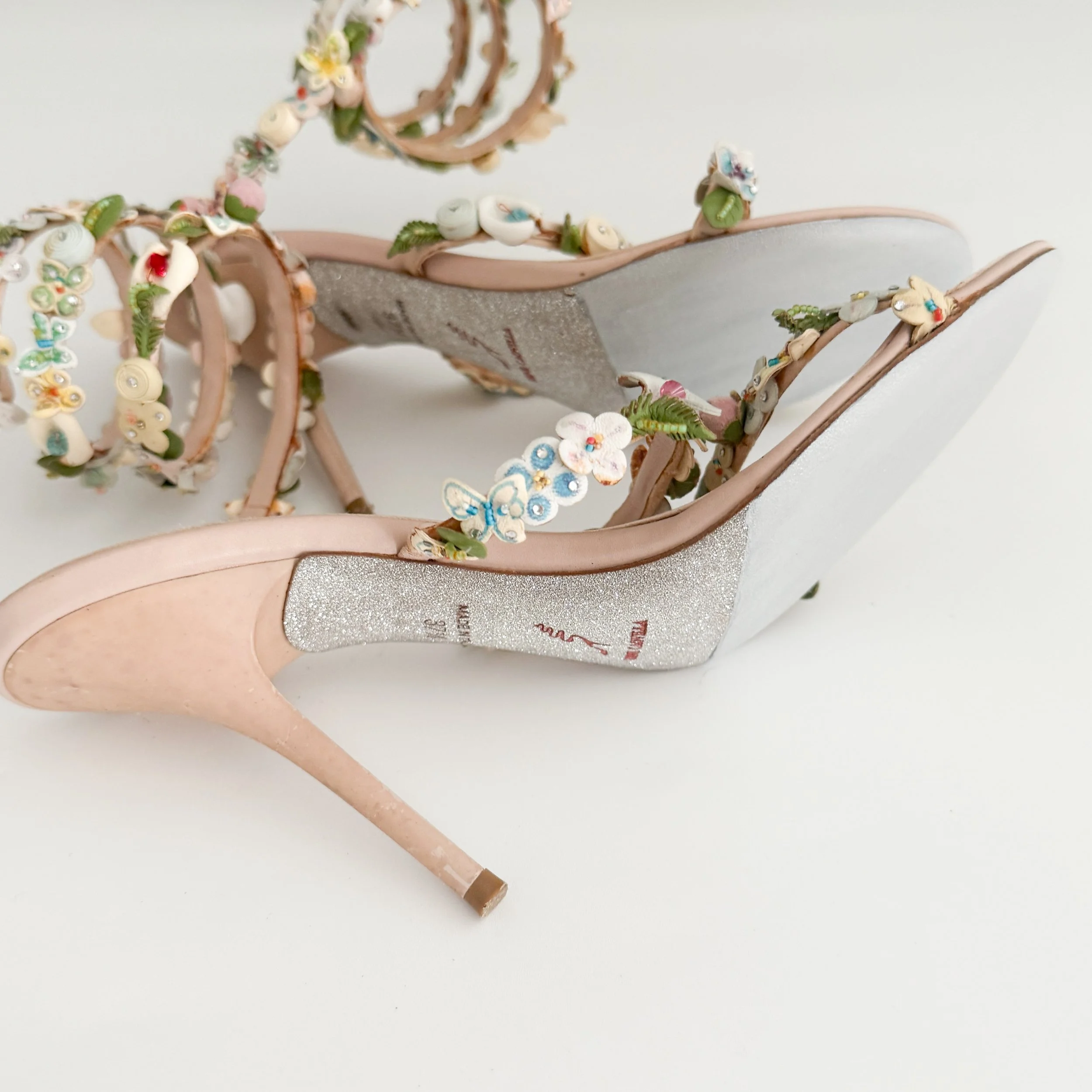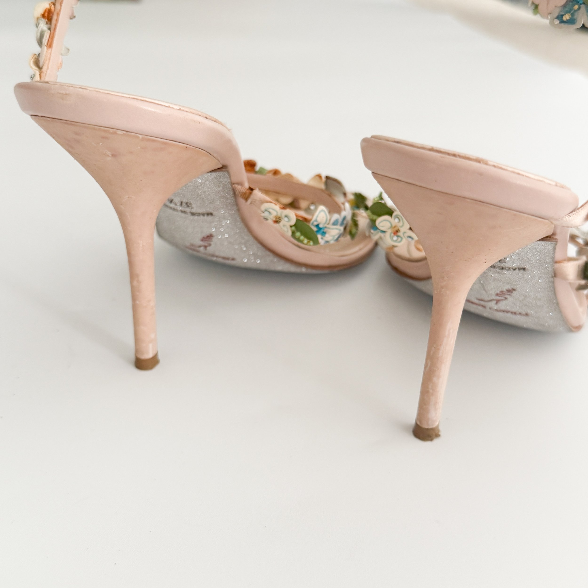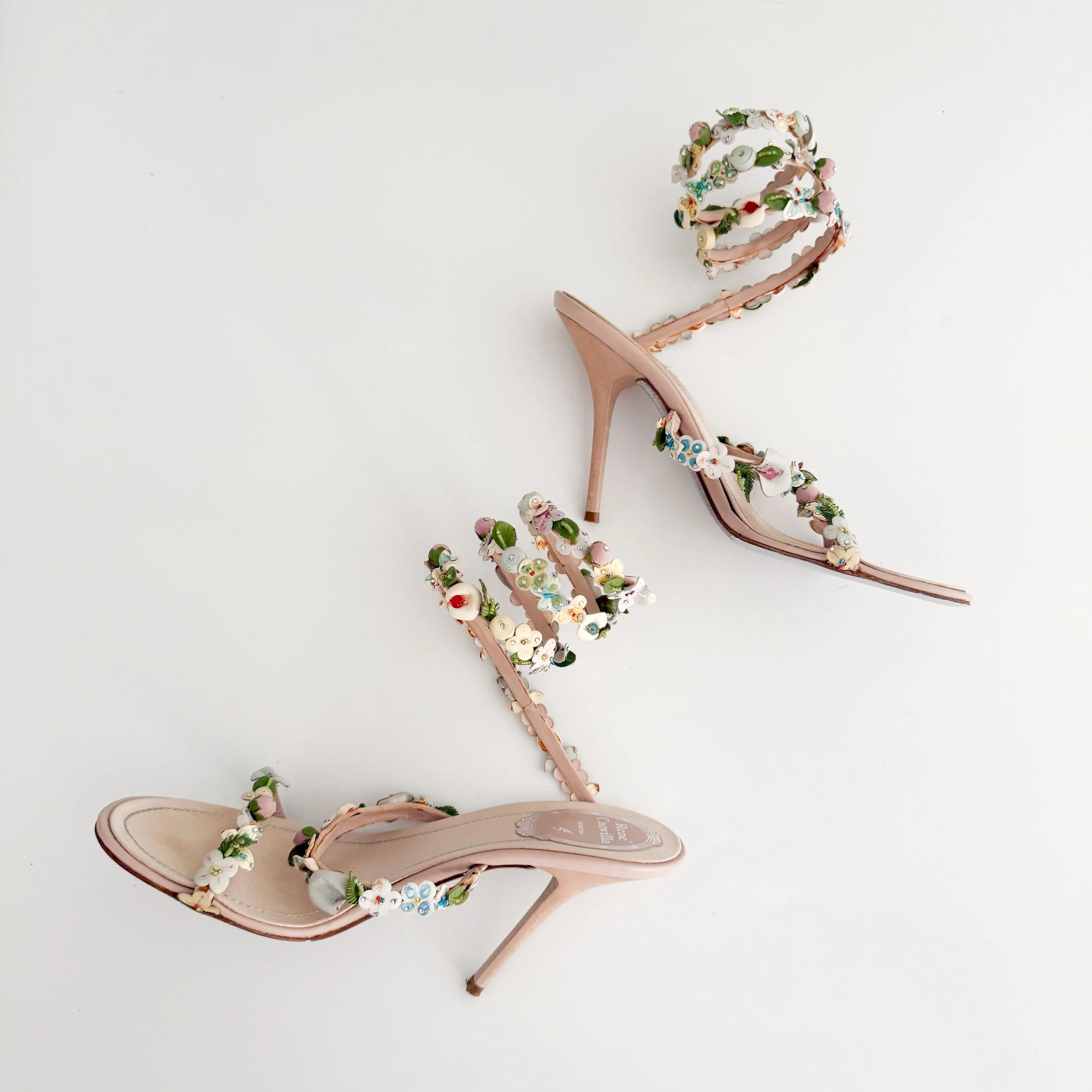 René Caovilla Italian Floral Ankle Wrap Sandal Heels (US 7.5 / IT 37.5)