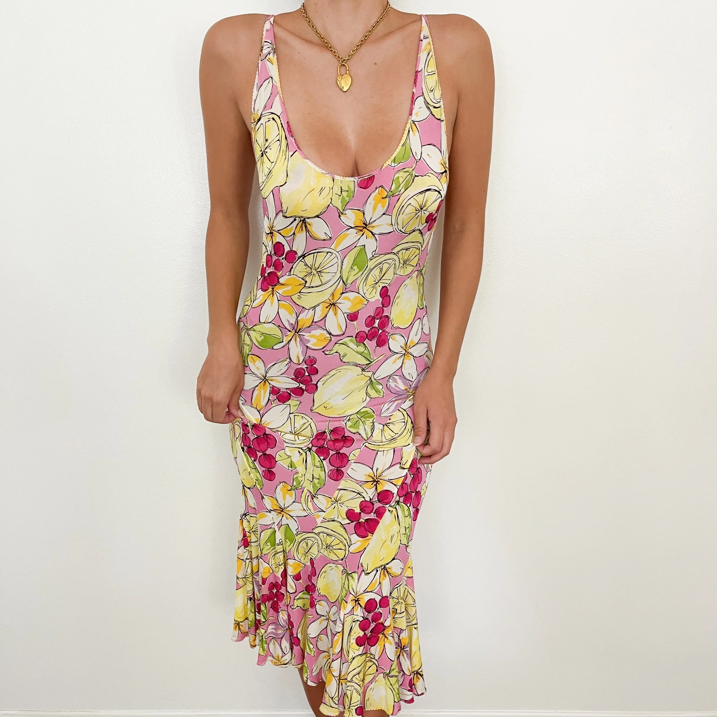 Blumarine Vintage Fruity & Floral Print Dress (Medium)