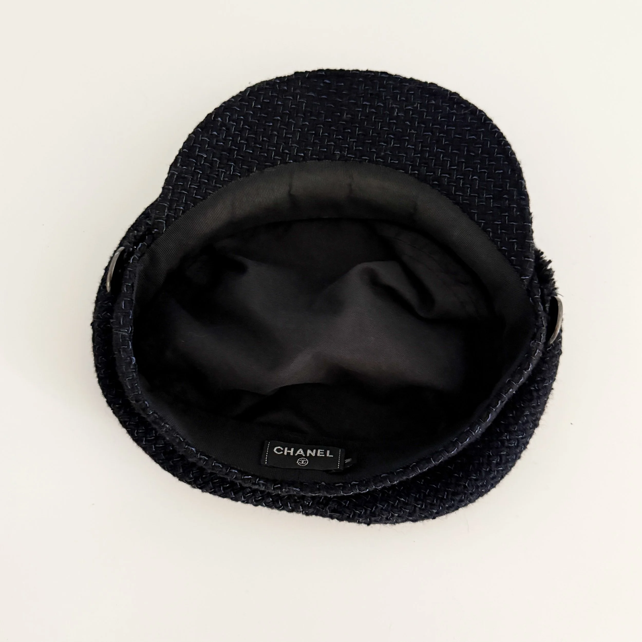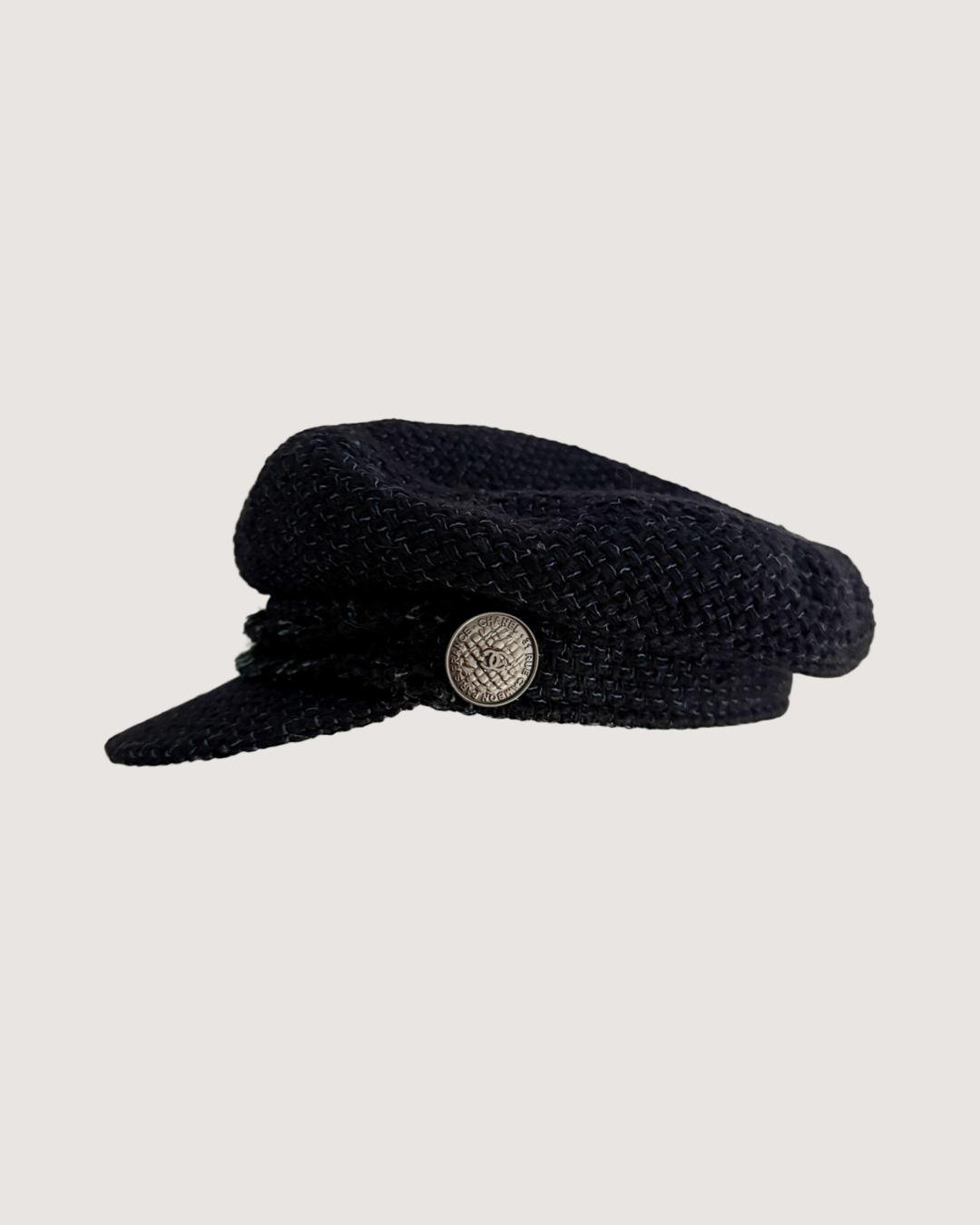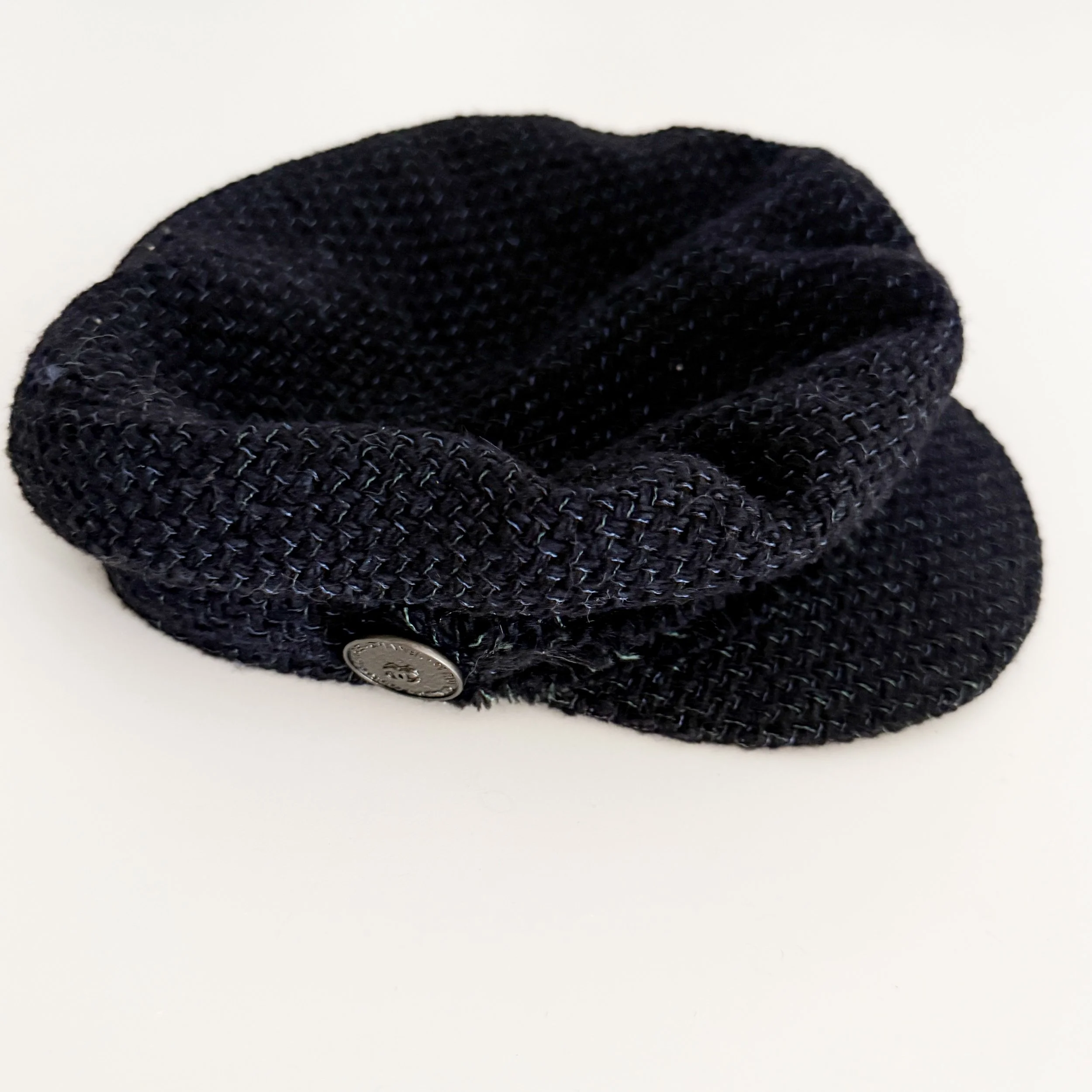 Chanel Iconic "CC 31 RUE CAMBON PARIS" Coin Midnight Tweed Newsboy Cap