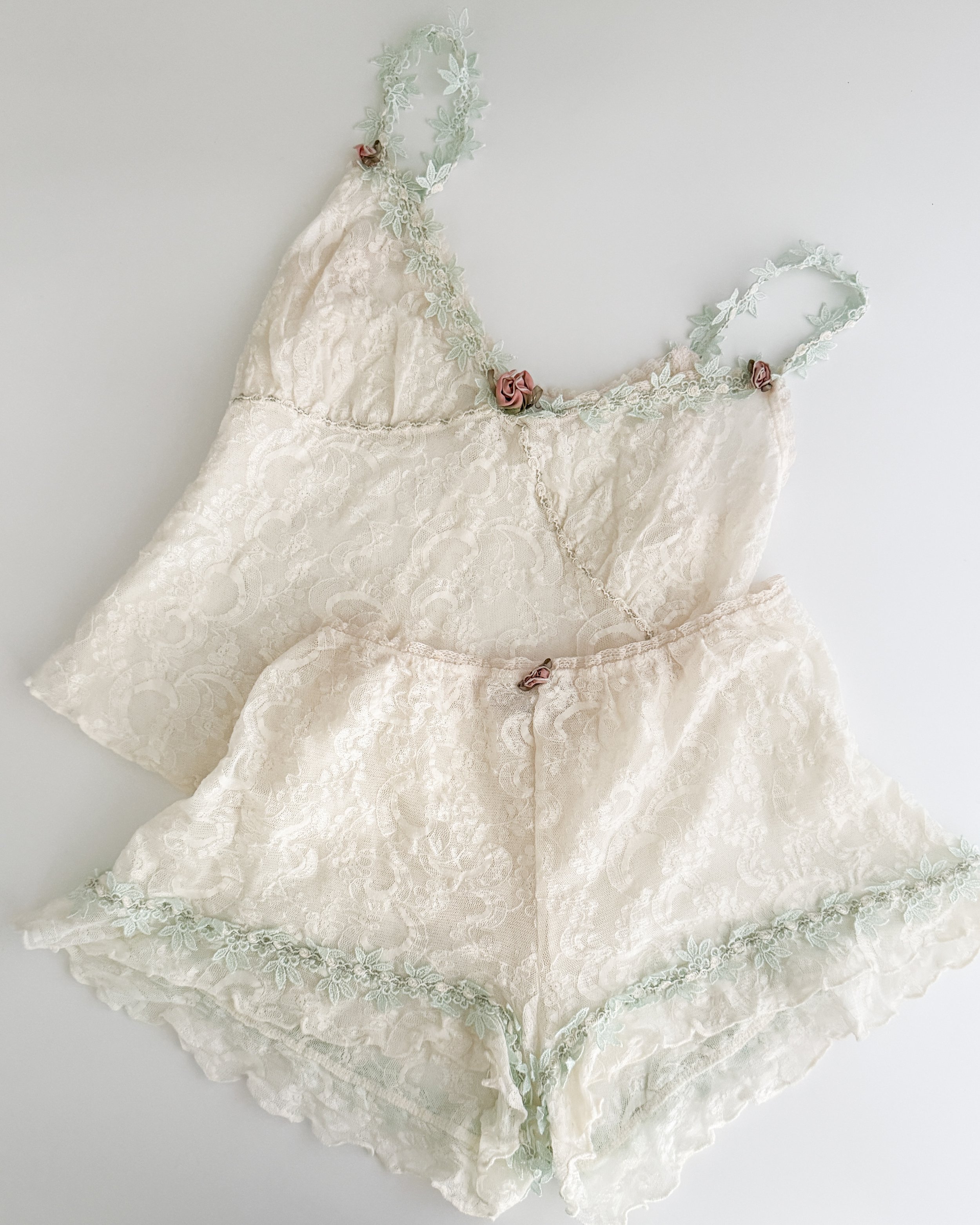 Vintage Luxury Designer 1990's Lace Camisole & Boy Short Two-Piece Ensemble (Medium)
