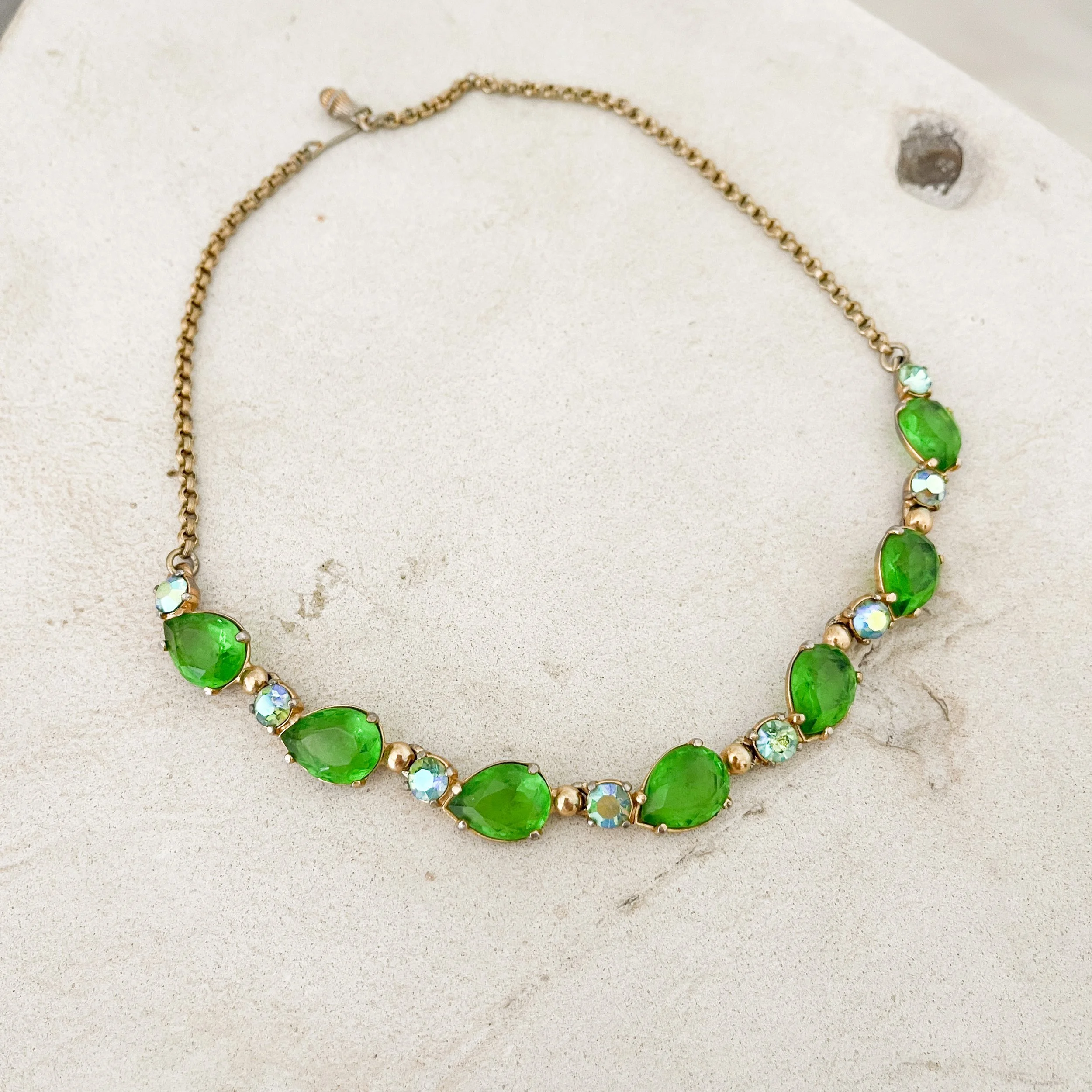 House of Schiaparelli RARE 1950's Green Jewel Choker Necklace