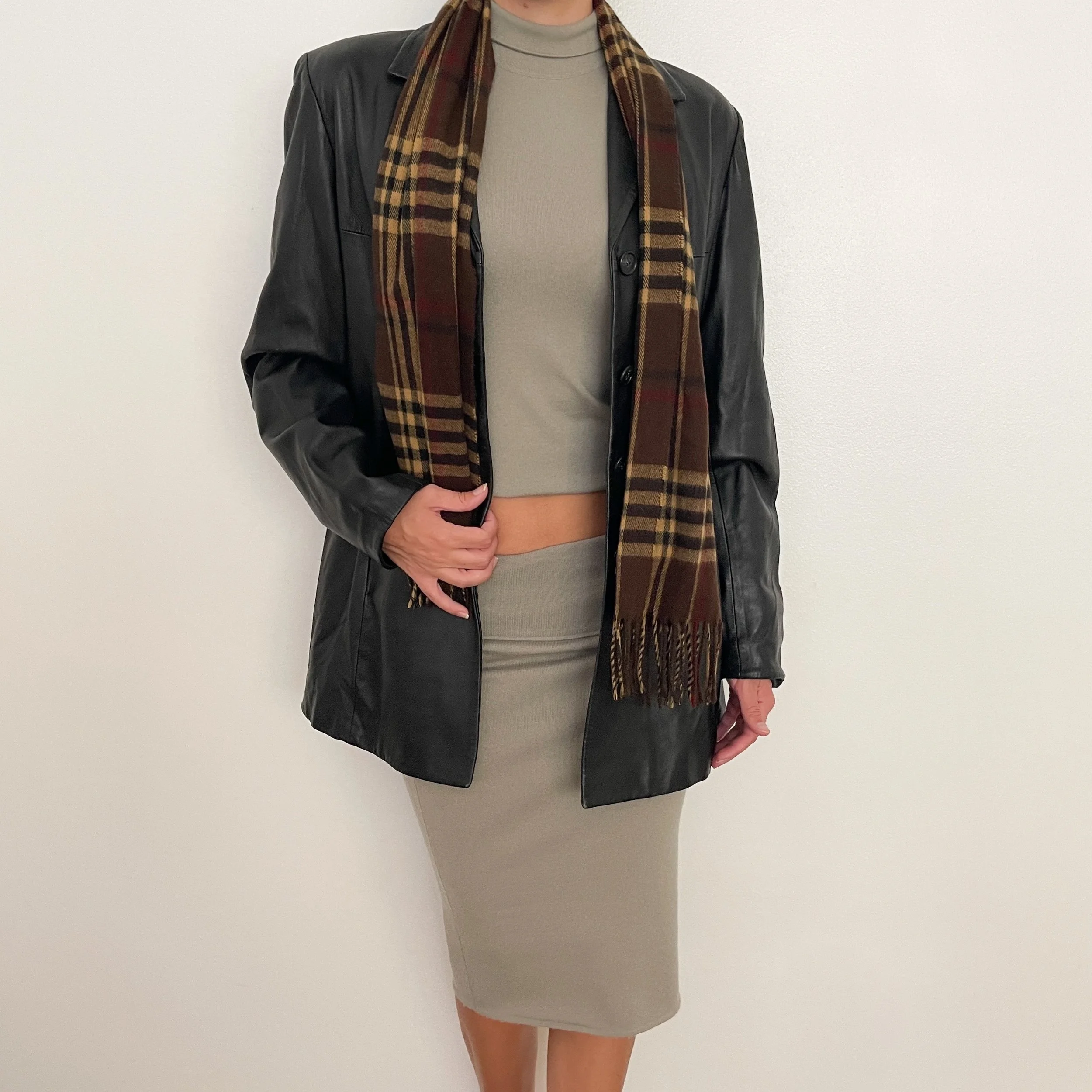 Luxurious Italian Cashmere Brown Checkered Scarf Made in Florence, Italy