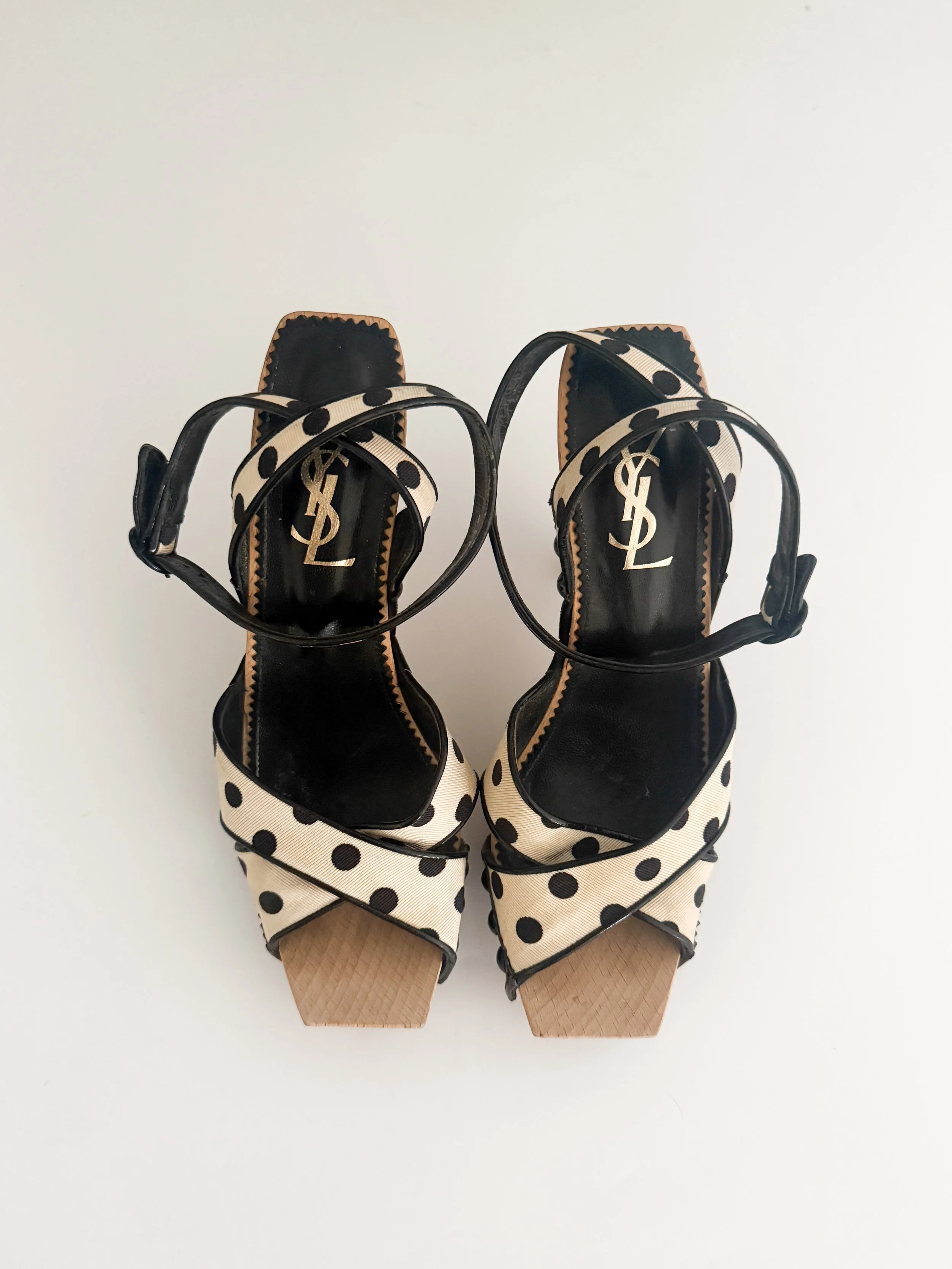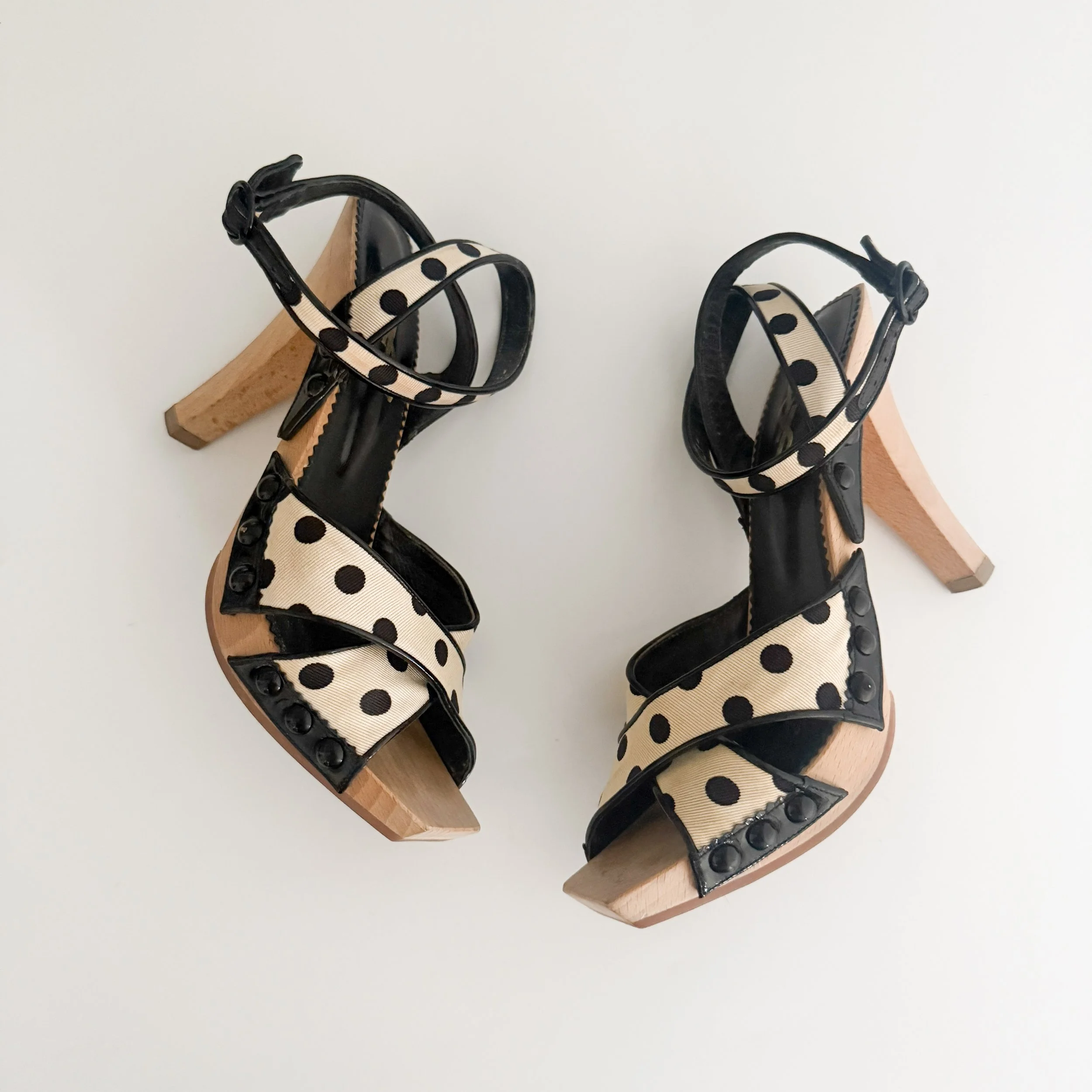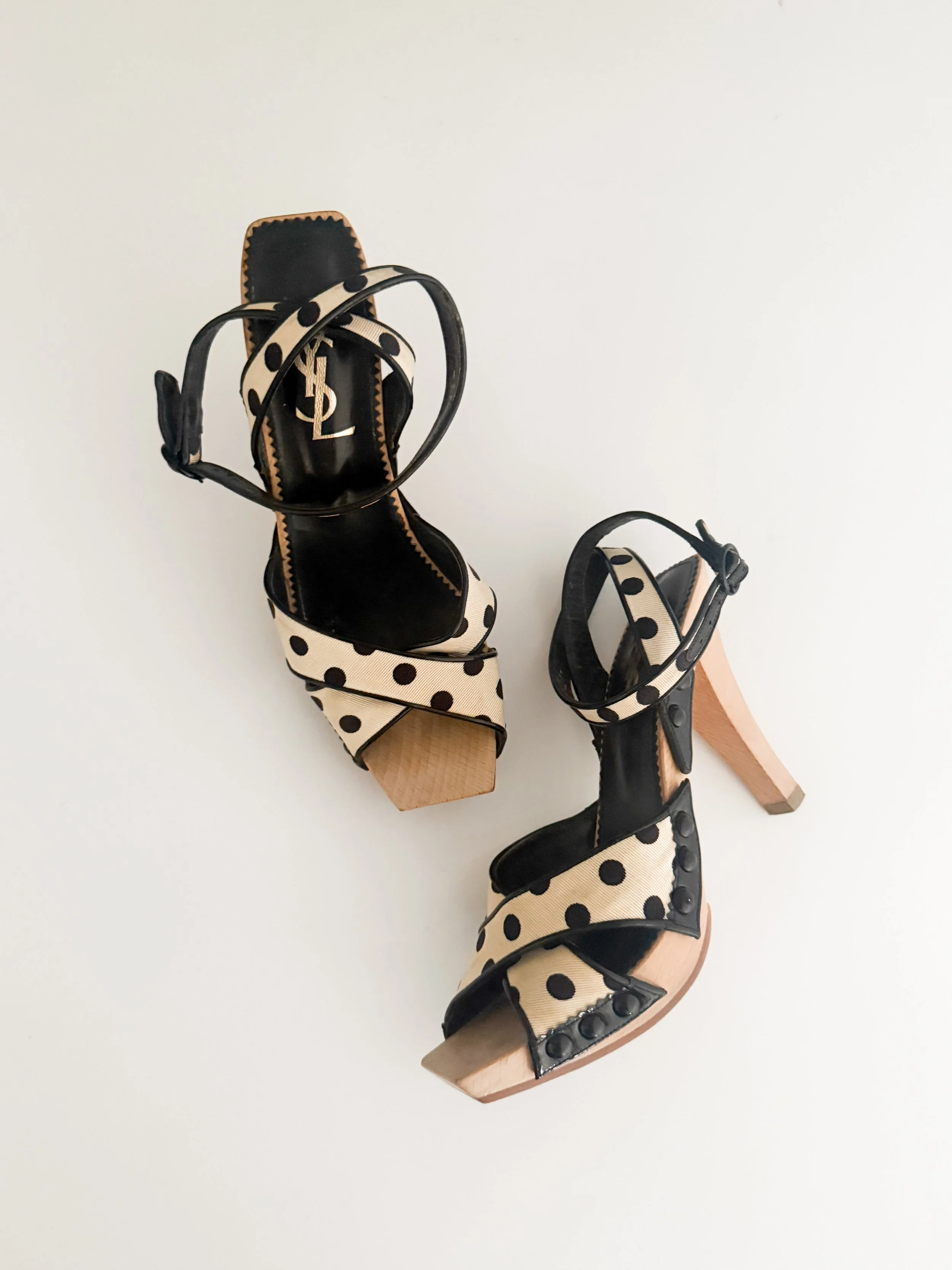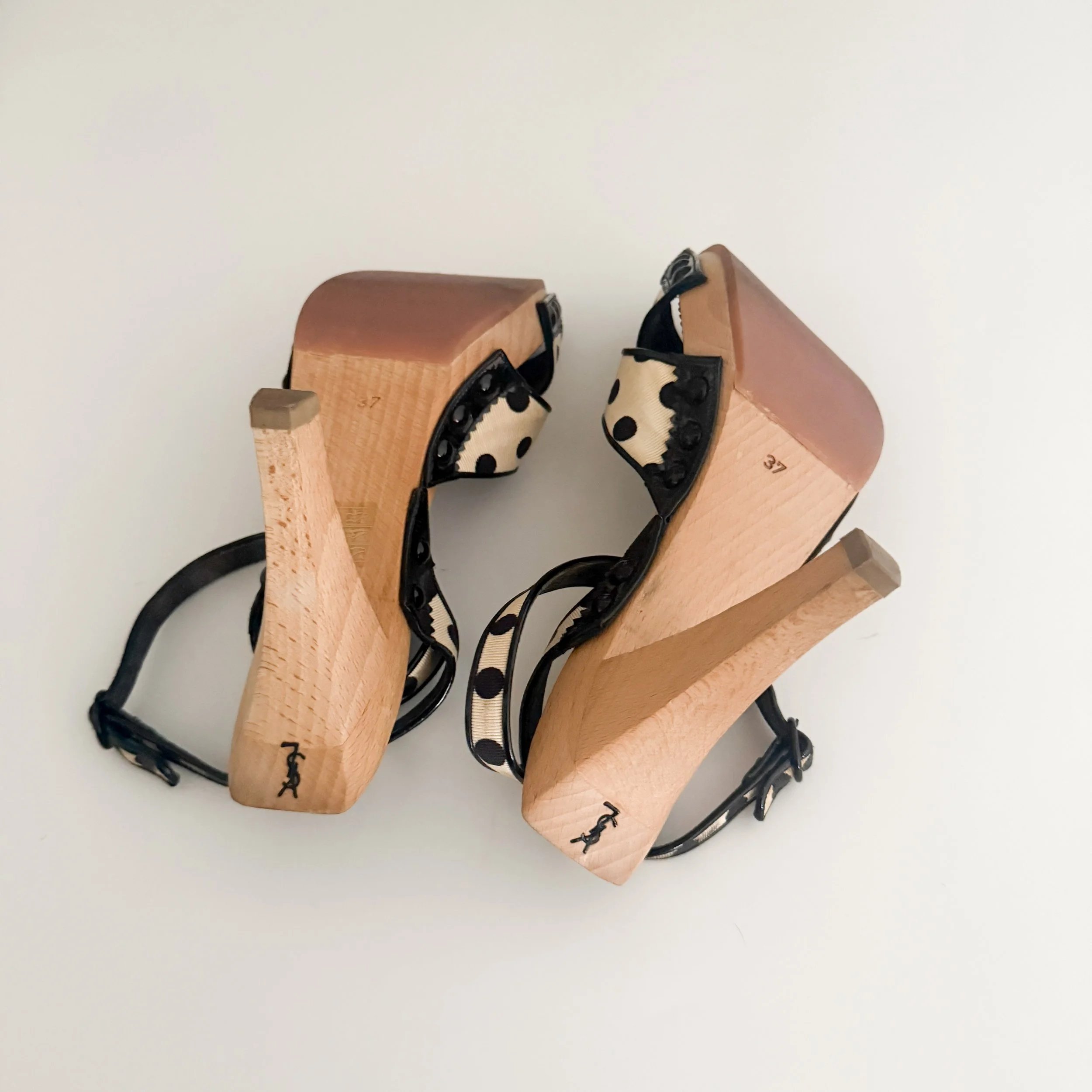 Yves Saint Laurent S/S 2005 Vintage Polka Dot Wooden Heels (US 8 / IT 37)