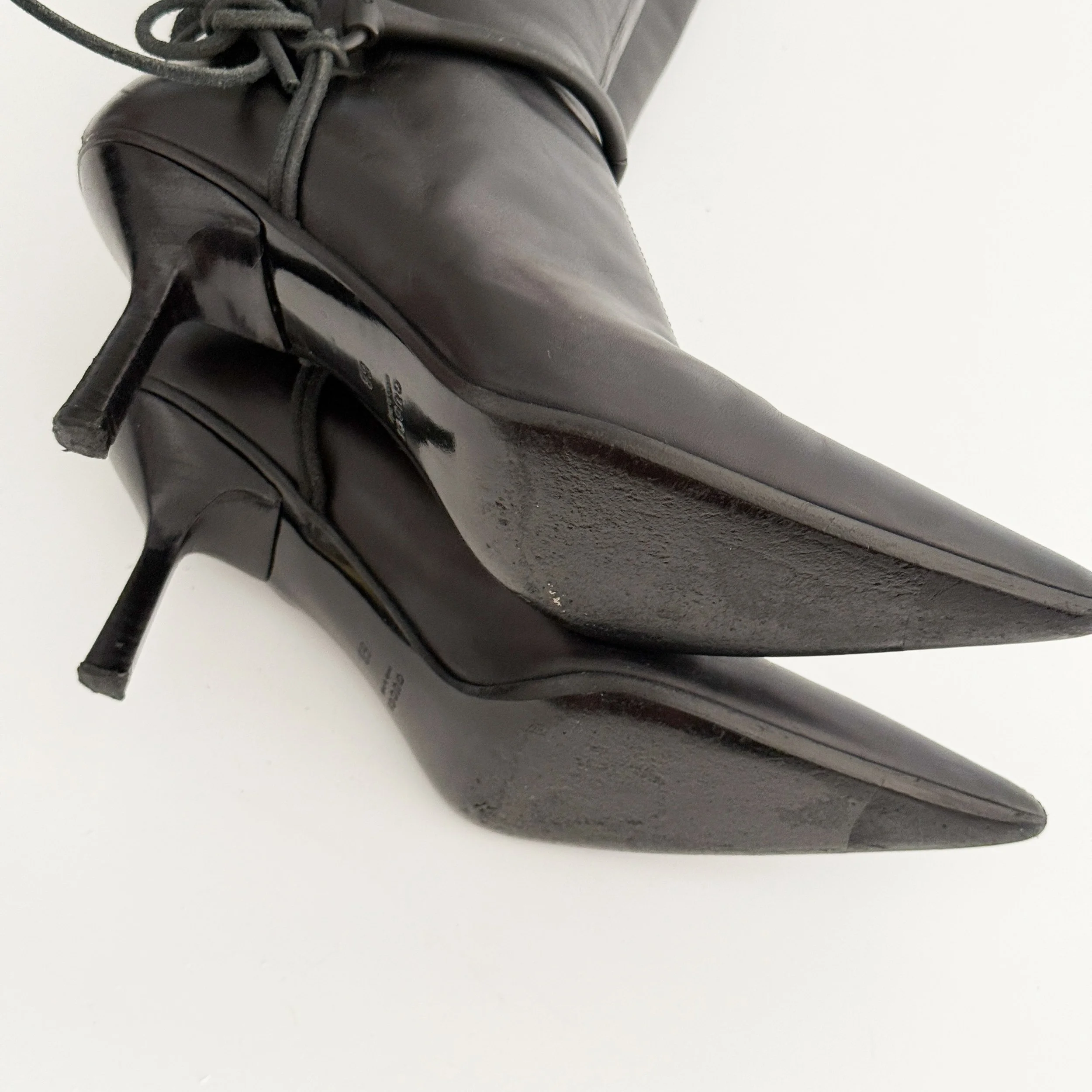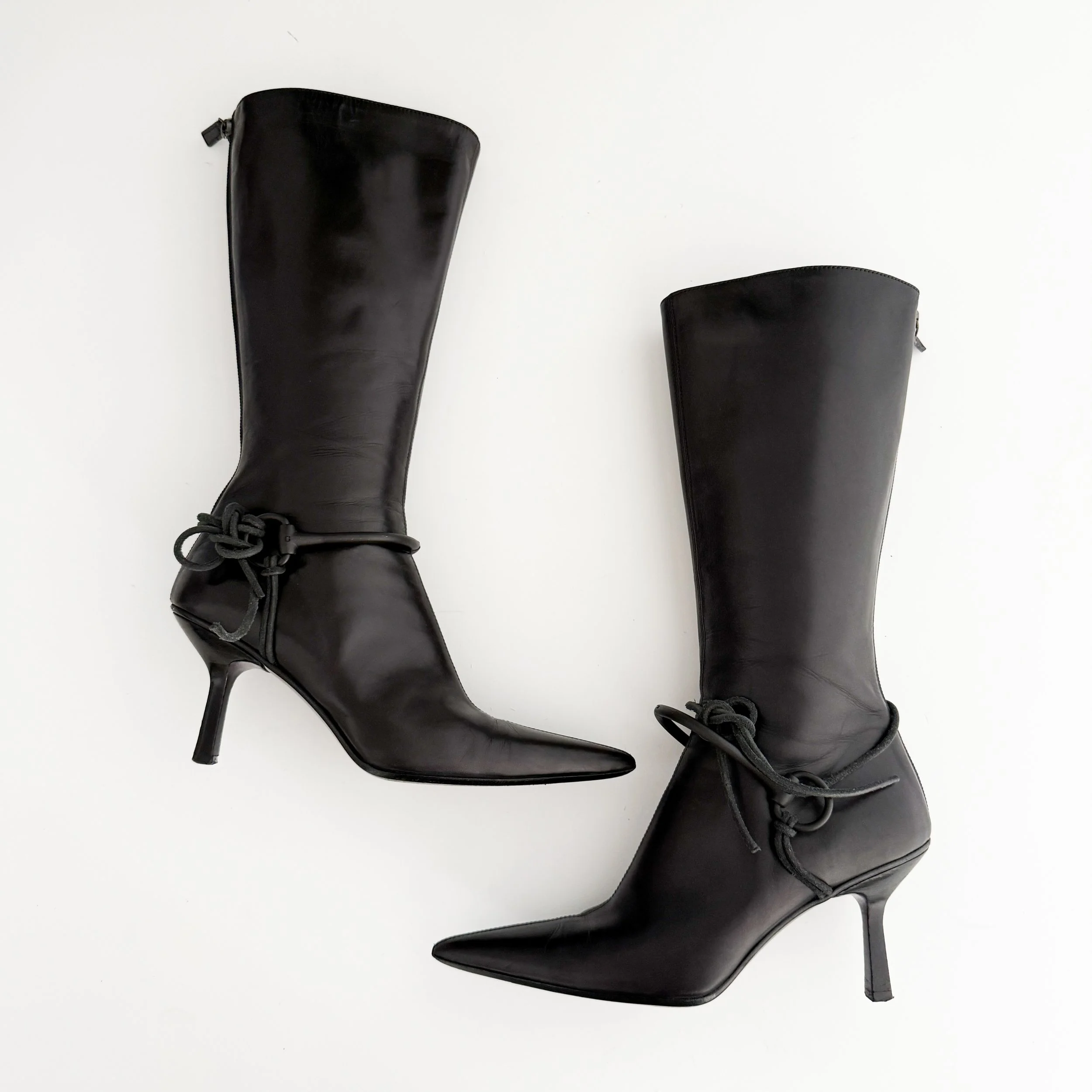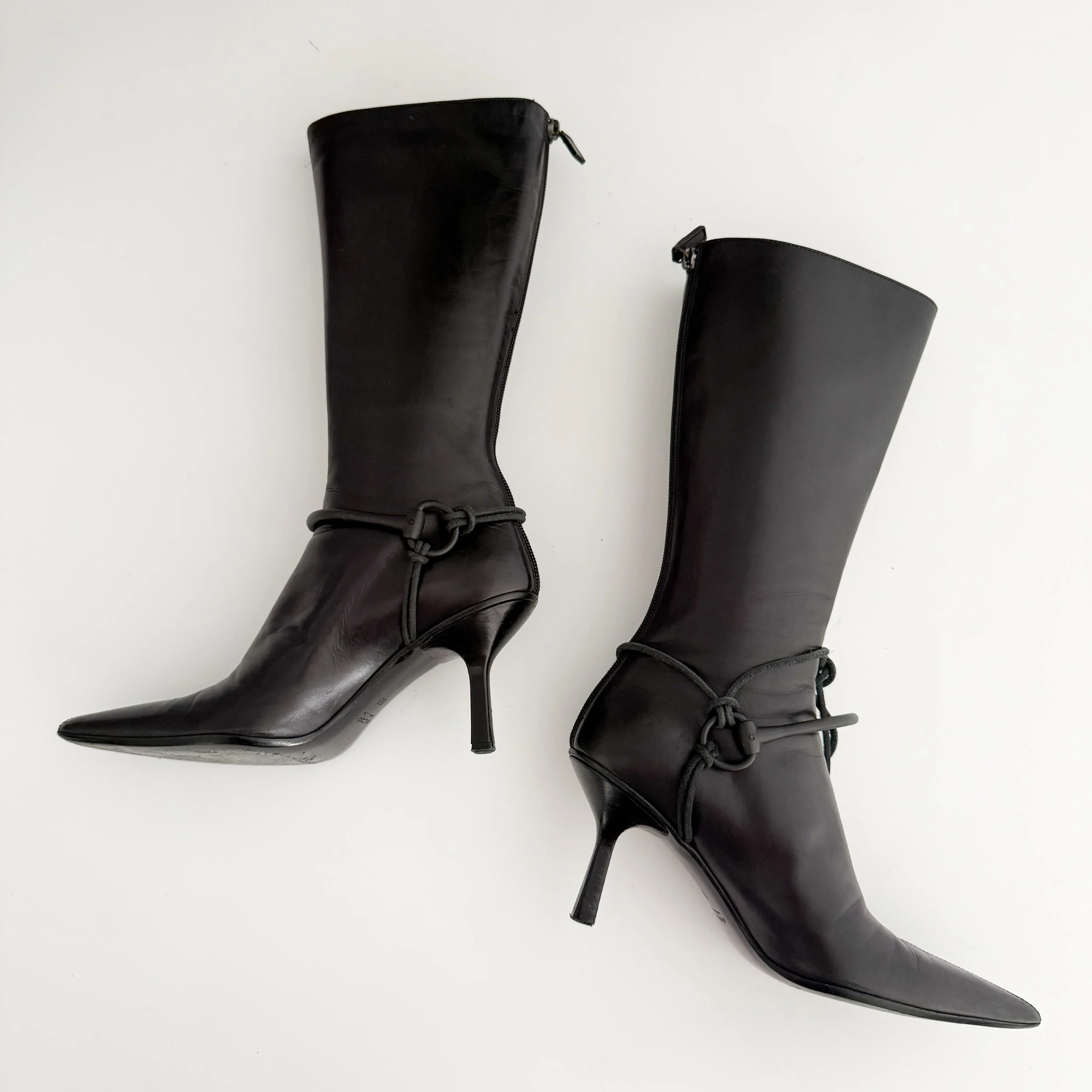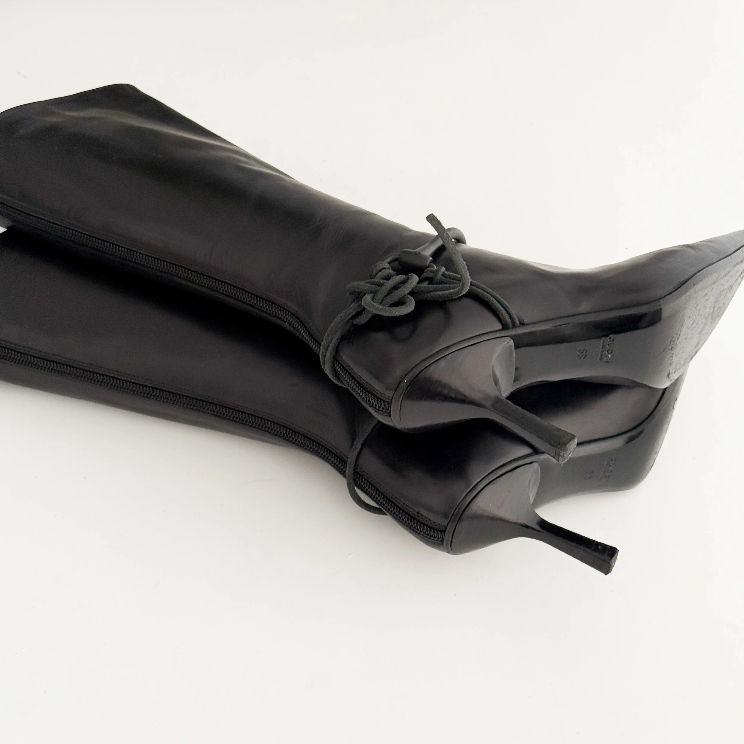 The most darling bow heels from iconic fashion house Yves Saint Laurent. These shoes are a timeless statement accessory that can be styled both casually and formally. A pair of heels to treasure forever. Perfect for the vintage designer collector.