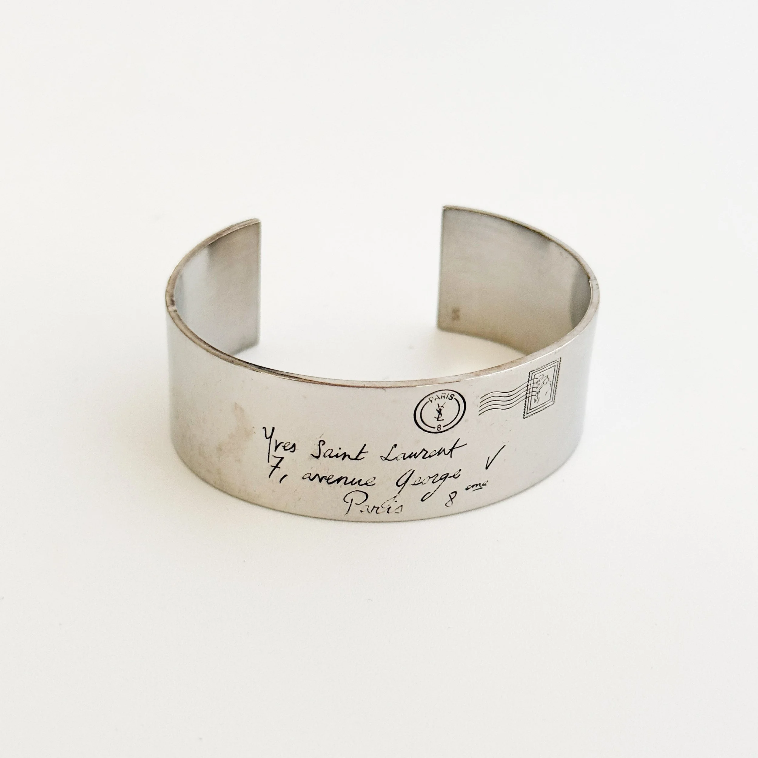 Yves Saint Laurent Vintage Engraved Love Letter Cuff Bracelet