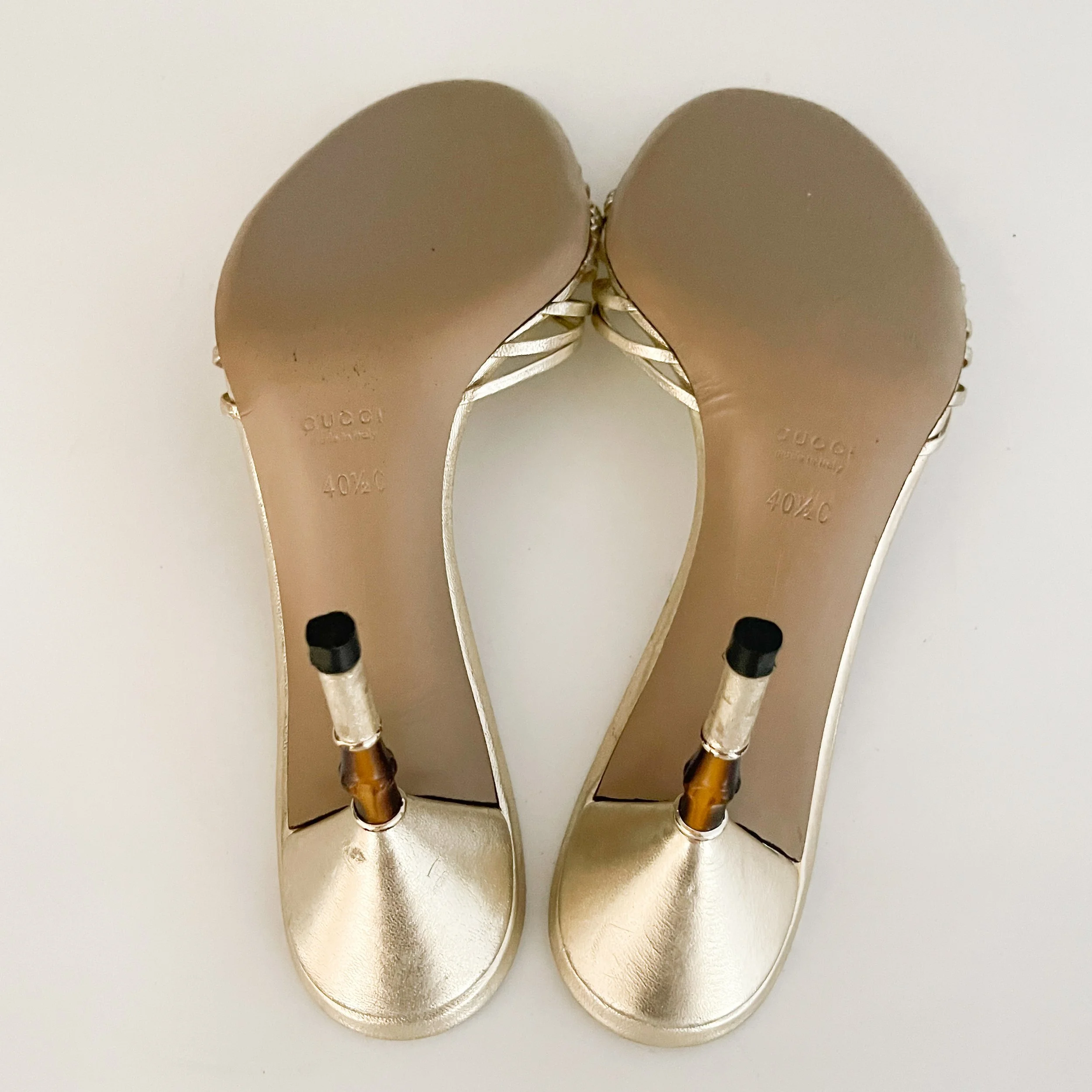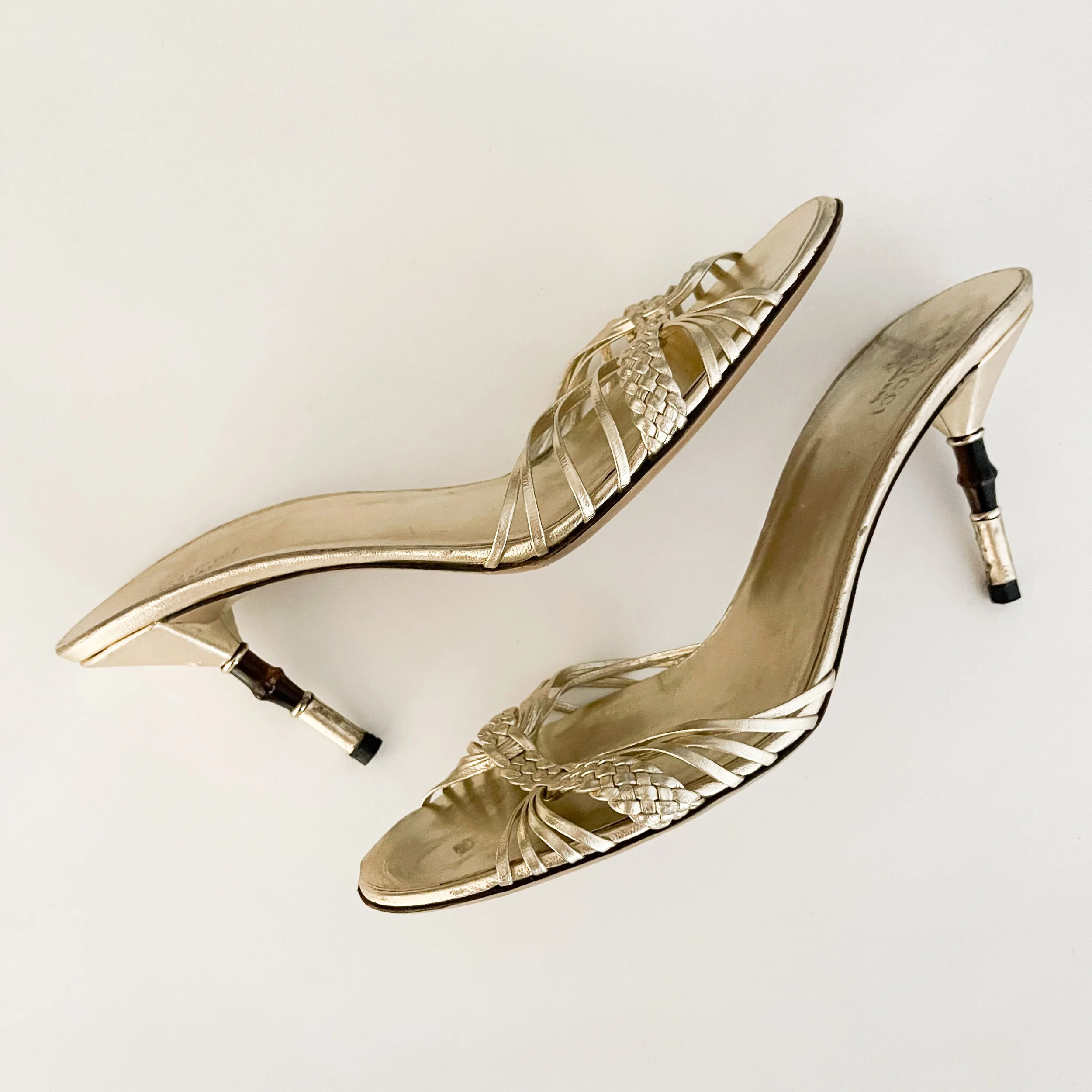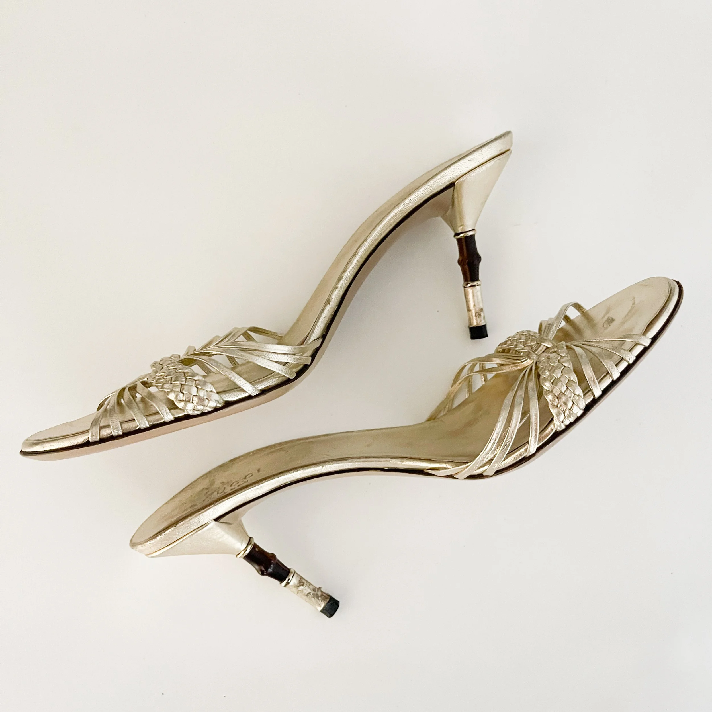 Gucci by Tom Ford Woven Metallic Bamboo Sandal Heels (US 10.5 / IT 40.5 C)